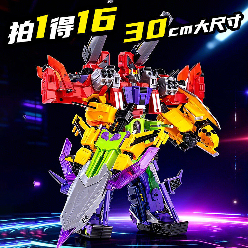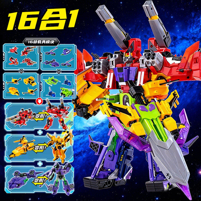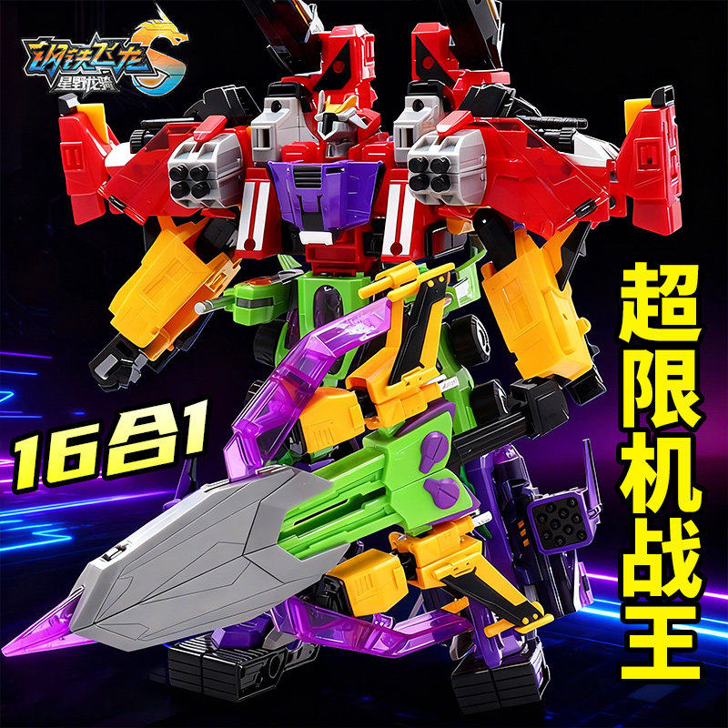 📚 钢铁飞龙5星野龙骑超限机战王16合1机甲合体变形机器人男孩玩具