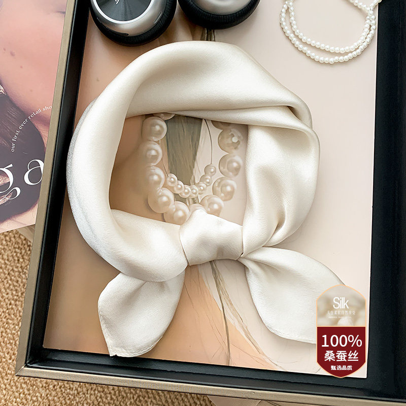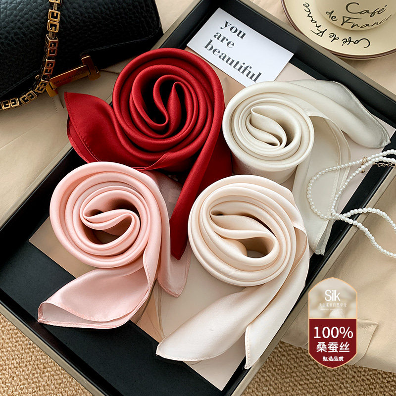 📚 大红色中国红纯色桑蚕丝真丝丝绸小方巾丝巾女春秋脖子装饰薄围巾