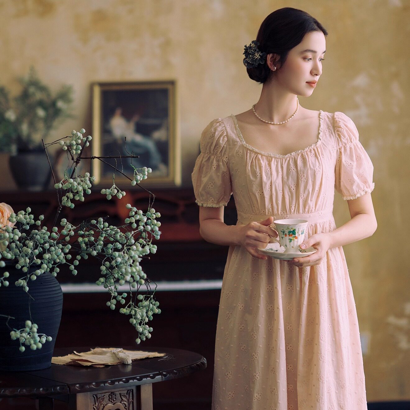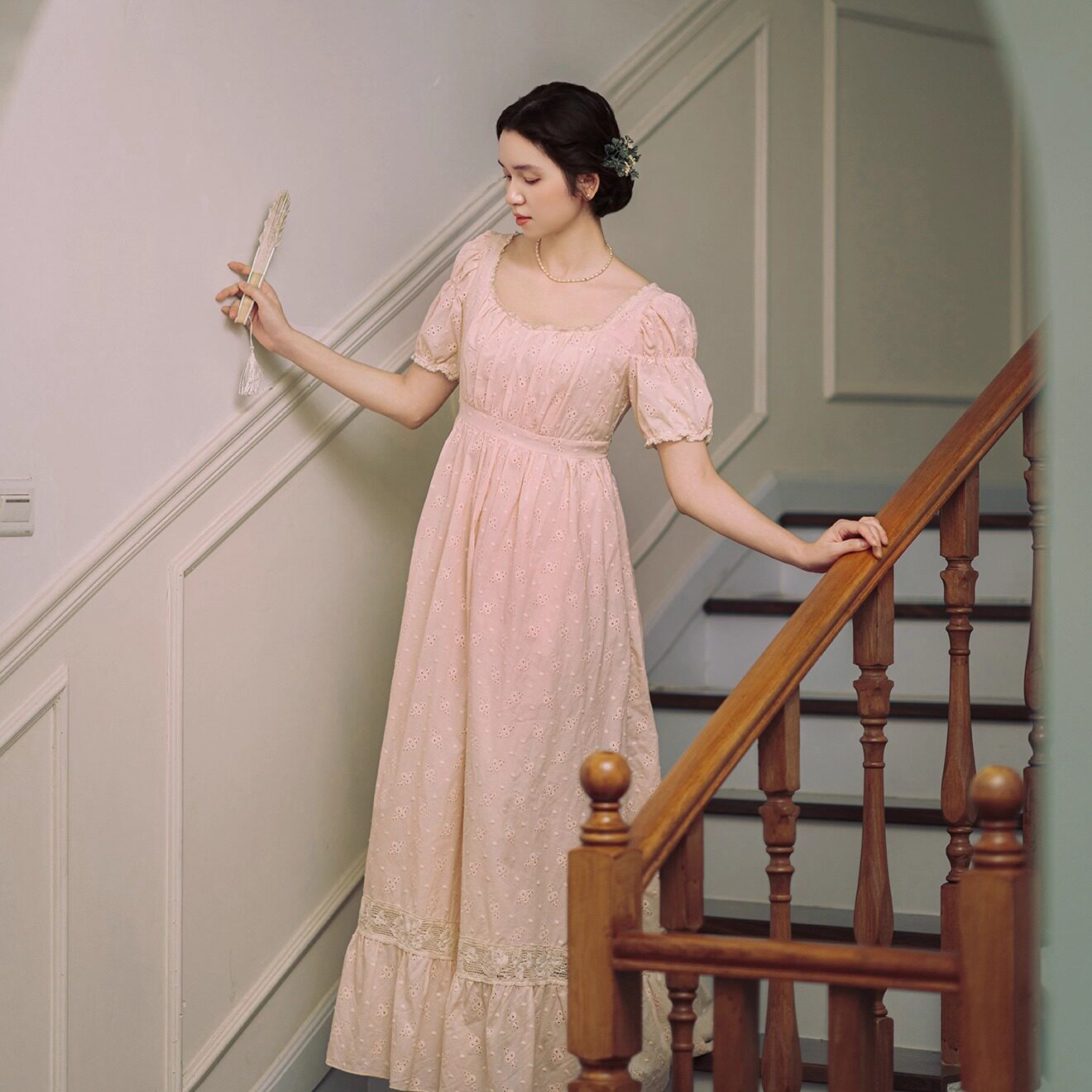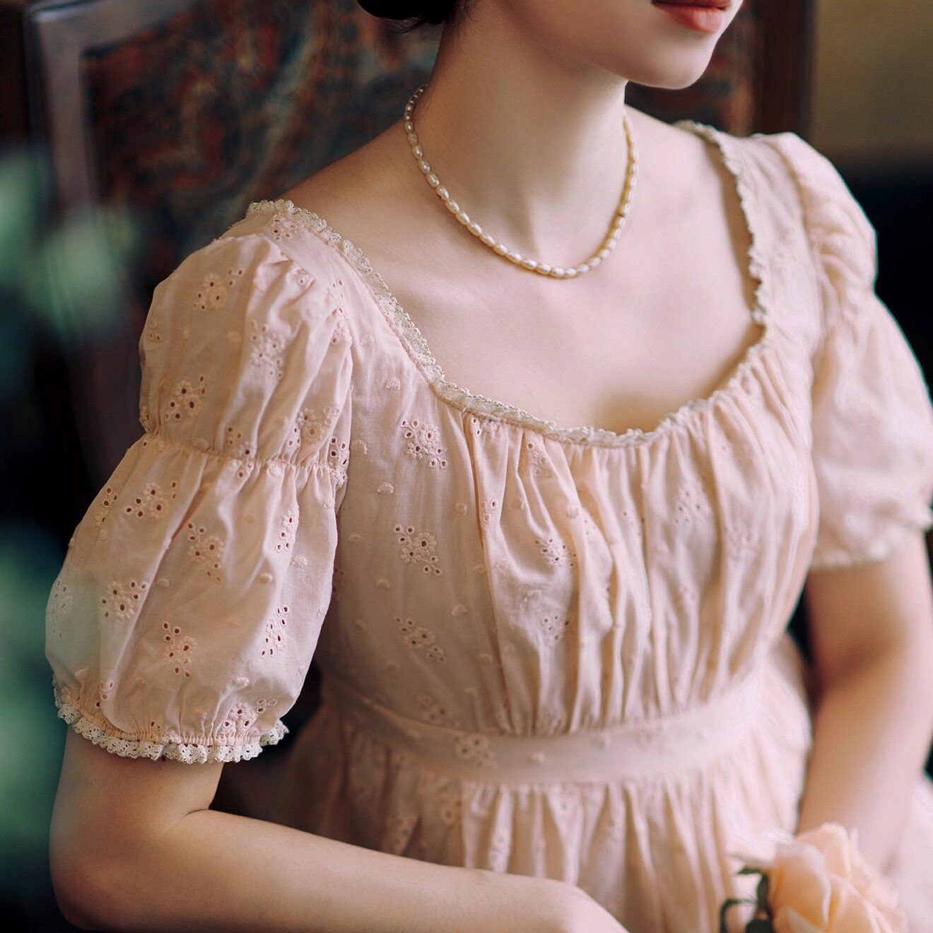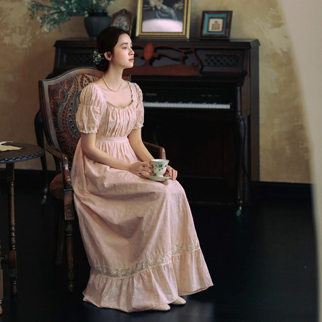 📚 拾光裁缝 蔷薇庄园 法式复古茶歇宫廷少女粉色刺绣帝政高腰连衣裙