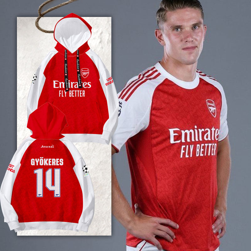 📚 25-26赛季阿森纳队服哲凯赖什同款足球衣服连帽卫衣男女球迷外套