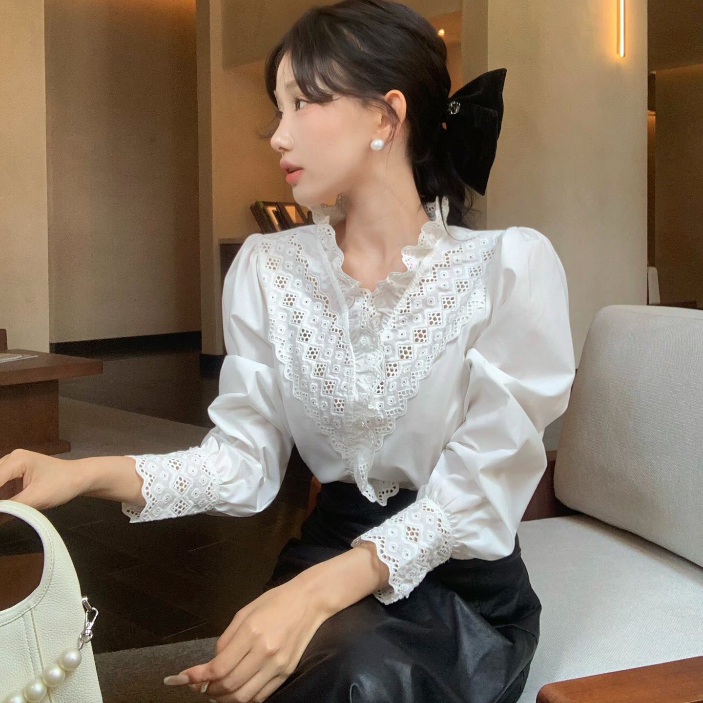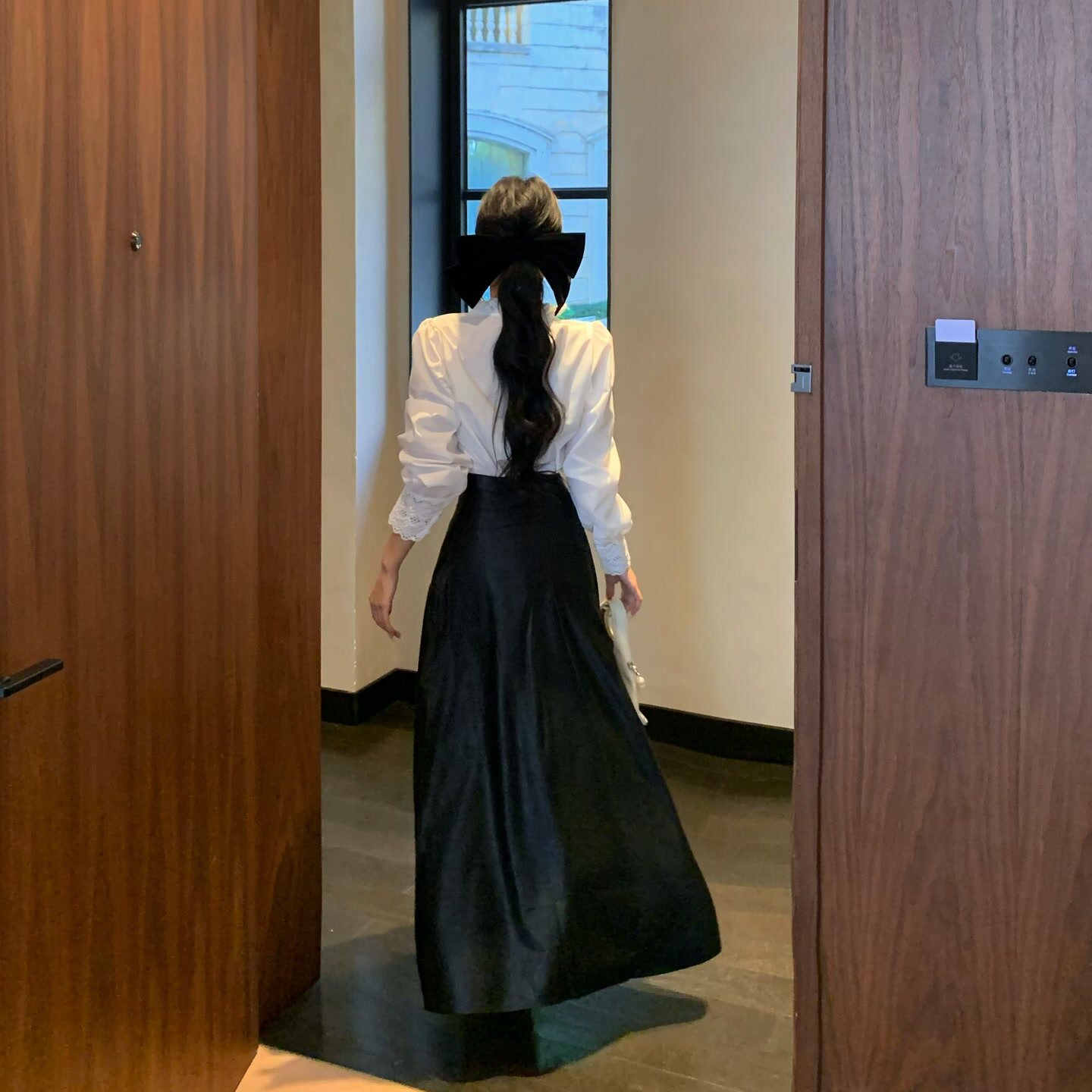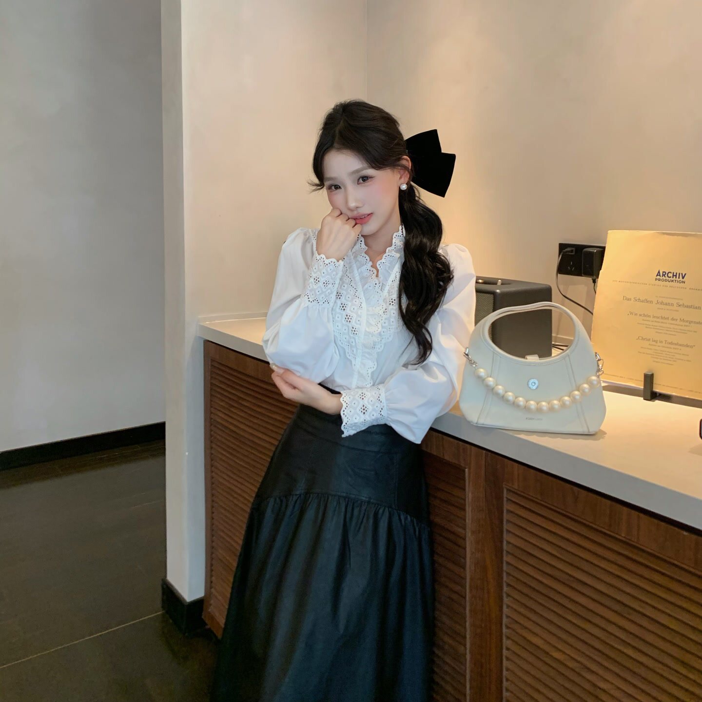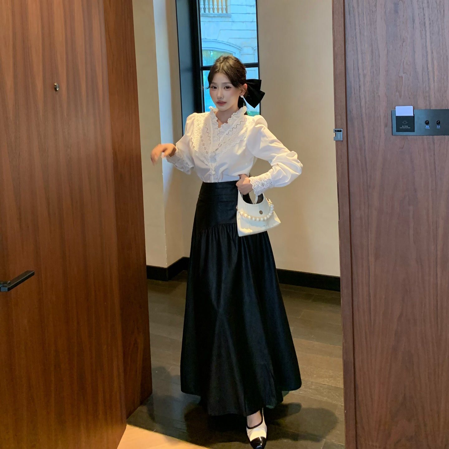 📚 陈六六CHENLIULIU【初秋氛围感】气质名媛宫廷花边衬衫伞摆半身裙