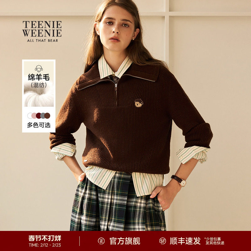 📚 TeenieWeenie小熊女装毛针织衫秋冬款保暖时髦款半拉链毛衣上衣