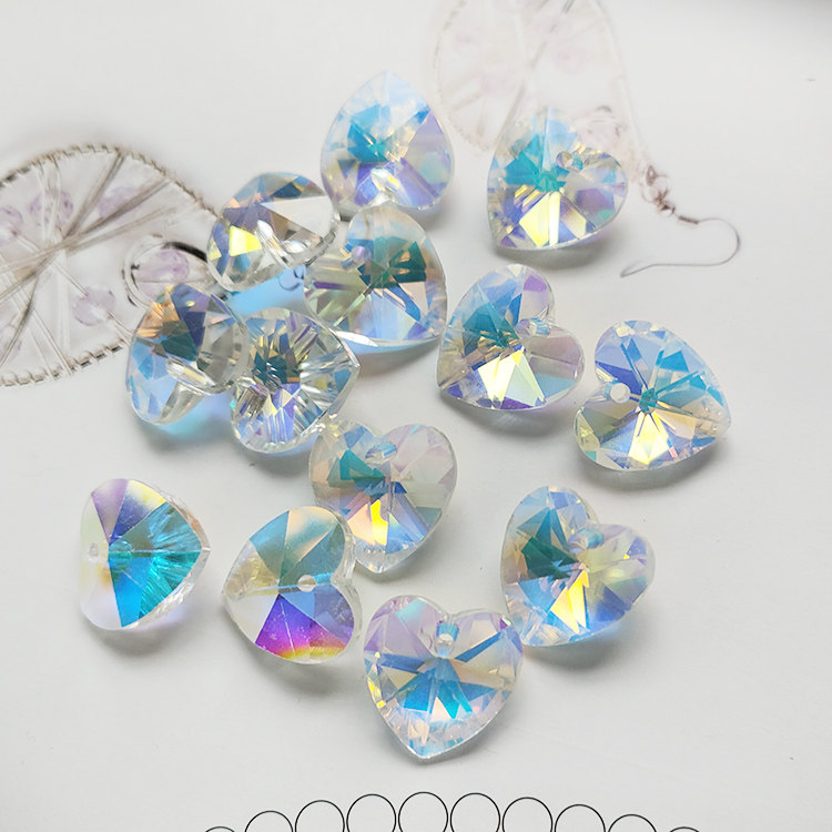 📚 精品桃心 玻璃珠子DIY手工饰品项链耳环雨滴吊坠配件材料 14mm