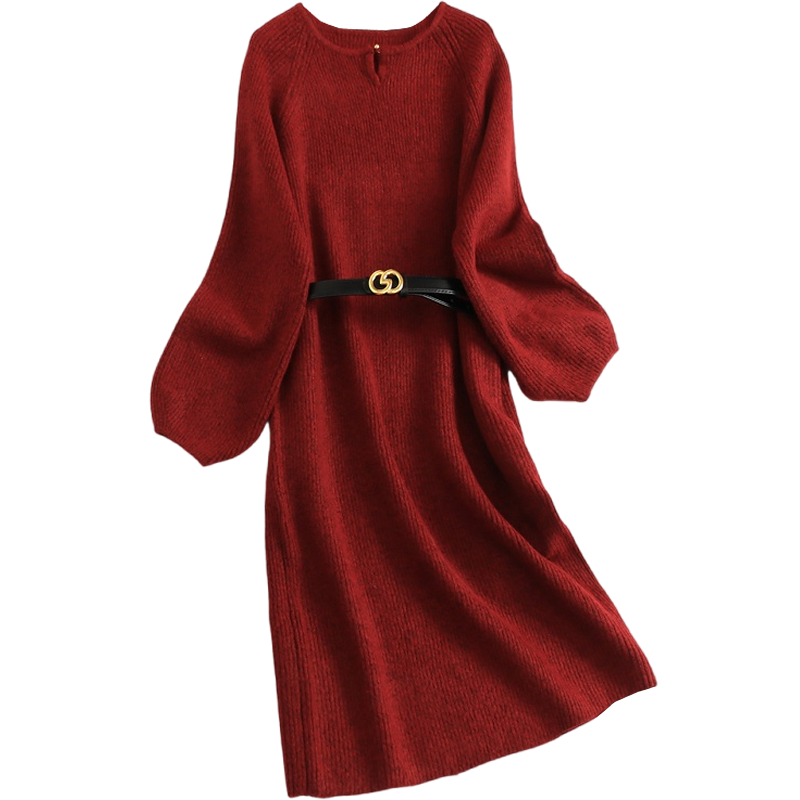 💥冬季新宠来啦!💥 这款镂空圆领系腰带安可拉红针织毛衣裙直筒裙,简直让人爱不释手!👗