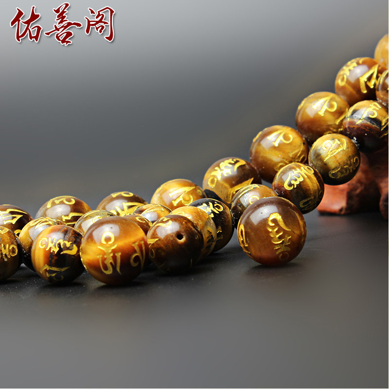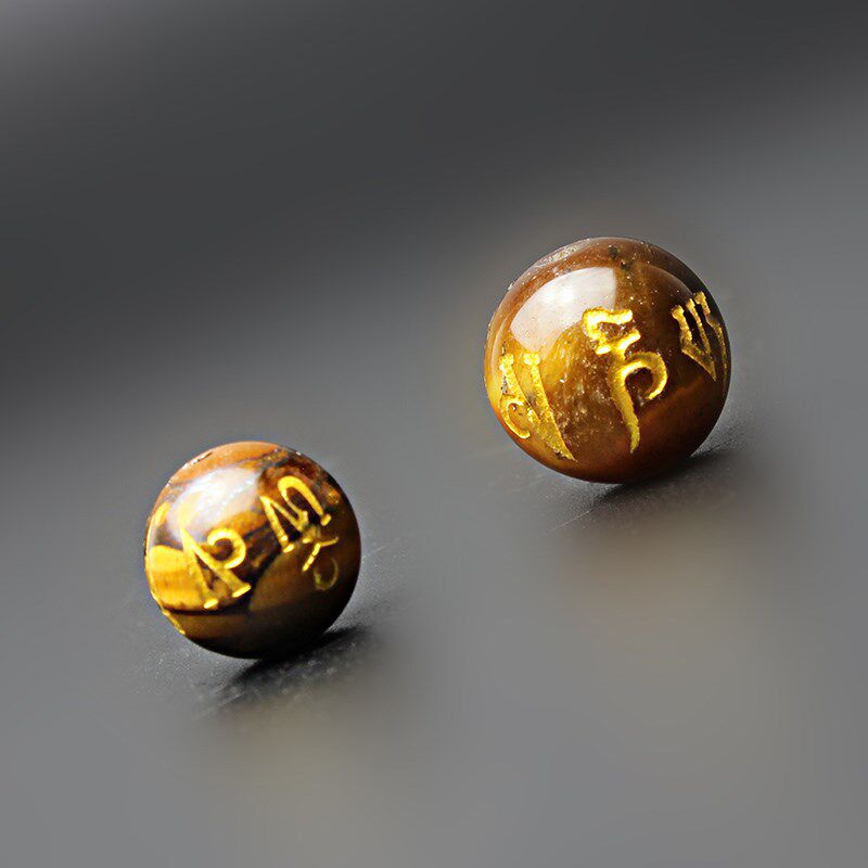 📚 极速10~12mm黄虎眼石烫金六字真言散珠圆珠隔珠配珠顶V珠DIY手串