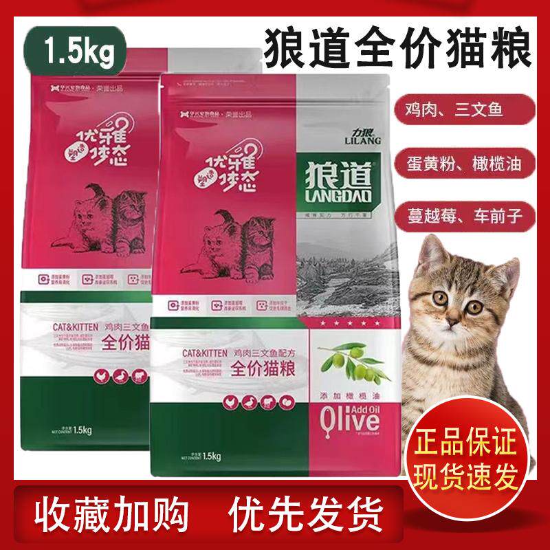 📚 力狼狼道猫粮1.5kg成幼猫美短英短蓝猫鸡肉三文鱼味猫粮食通用9斤