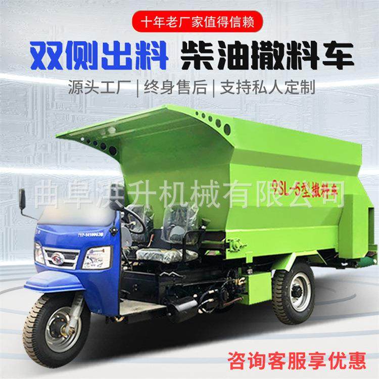 📚 小型电动三轮牛羊撒料车 养殖场双侧出料喂料车 畜牧场刮板投料车