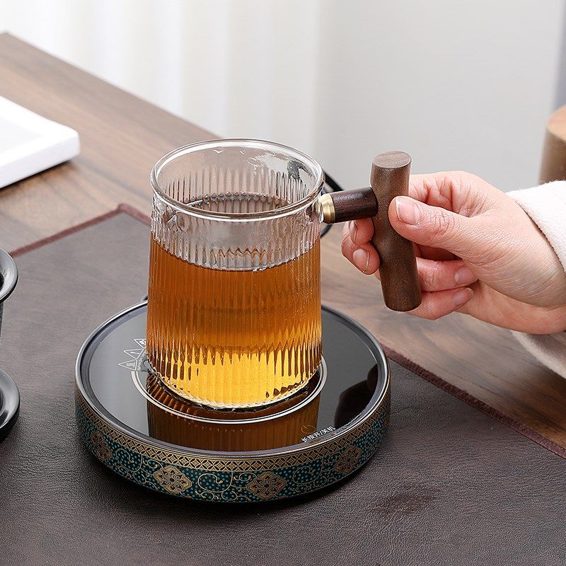 📚 加热茶杯茶水分离玻璃杯带盖带过滤陶瓷内胆办公室泡茶杯恒温水杯