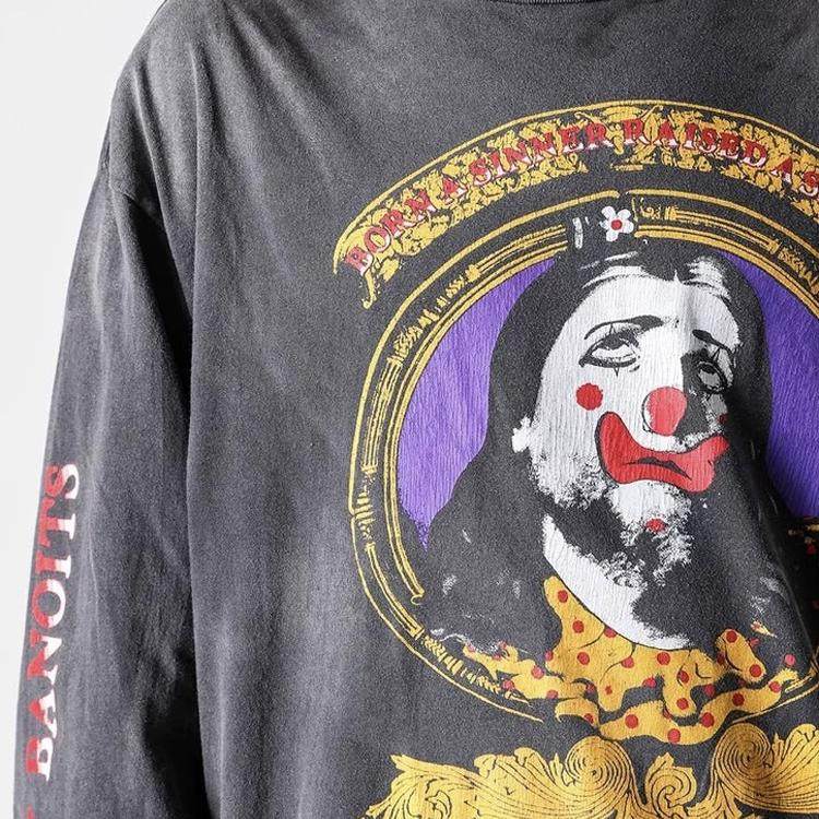 📚 Saint Michael裂纹小丑VTG美式高街水洗宽松长袖打底T恤男女潮ins