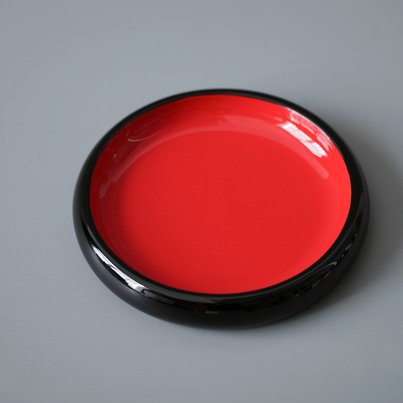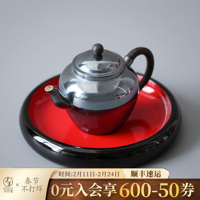📚 万仟堂壶托茶承圆形功夫茶具茶道配件创意大红色茶承黑底朱漆承