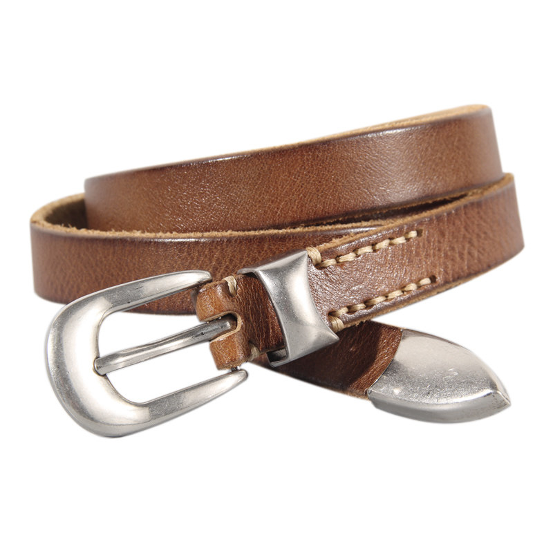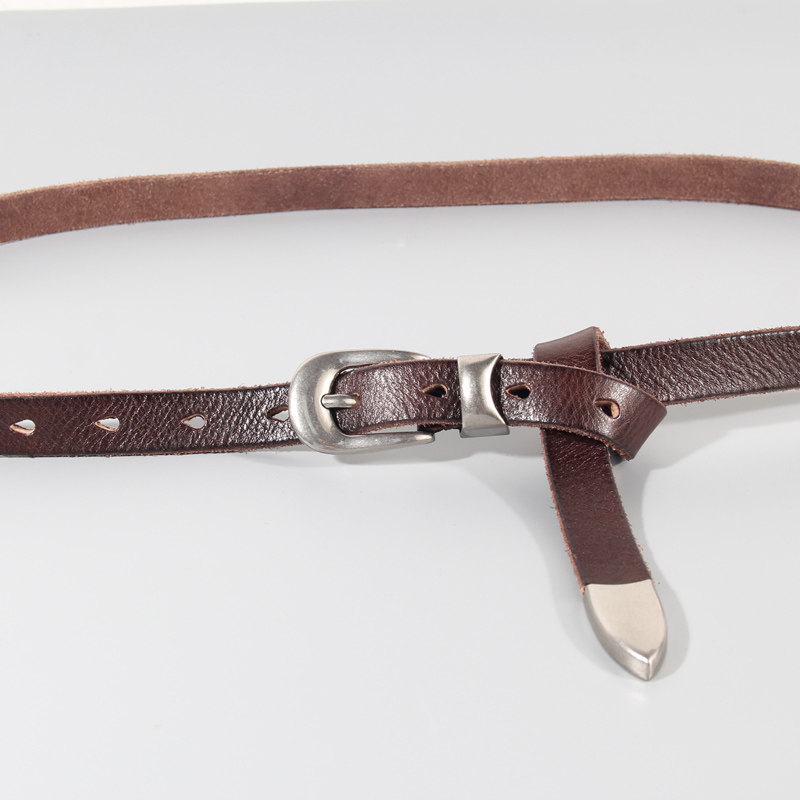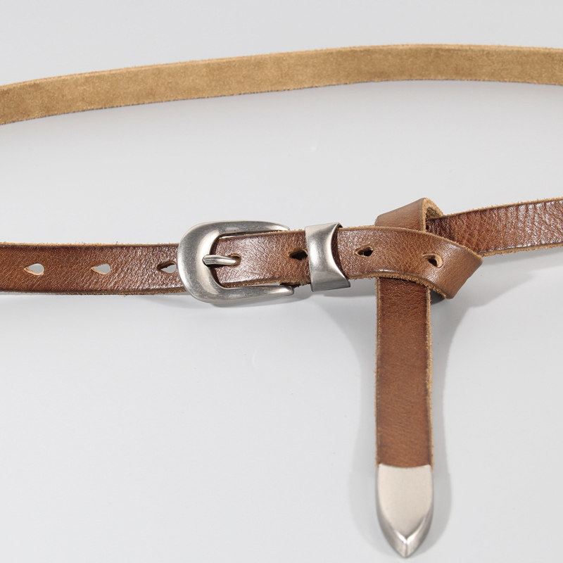 📚 加长皮带女装饰细款百搭真皮头层纯牛皮牛仔裤腰带窄软面棕色打结