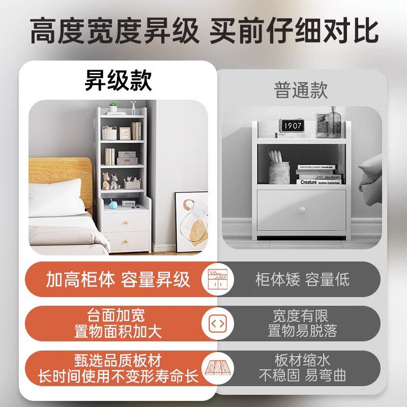 📚 床头柜窄款简约现代卧室加高床边置物架出租房小床边柜简易收纳柜