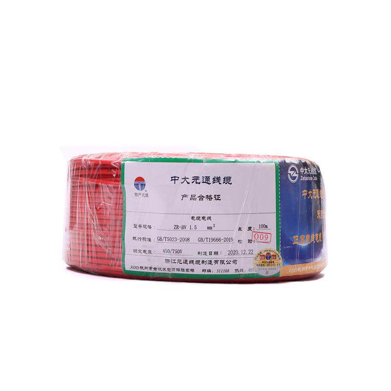 📚 中大元通BV1.5平方家装硬芯线照明线铜电线电缆单股铜线电源线