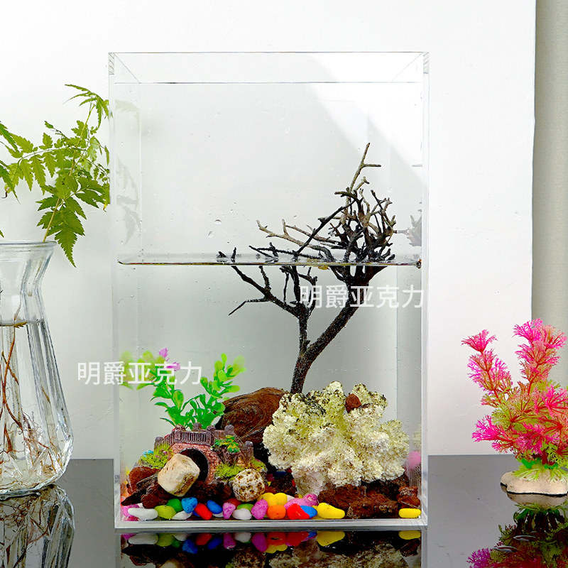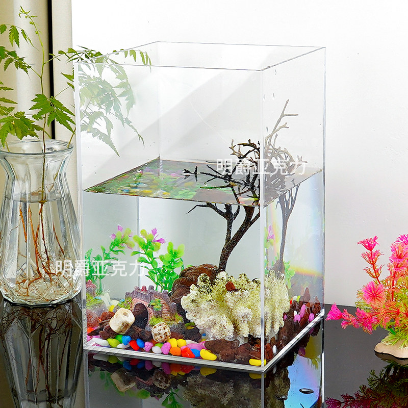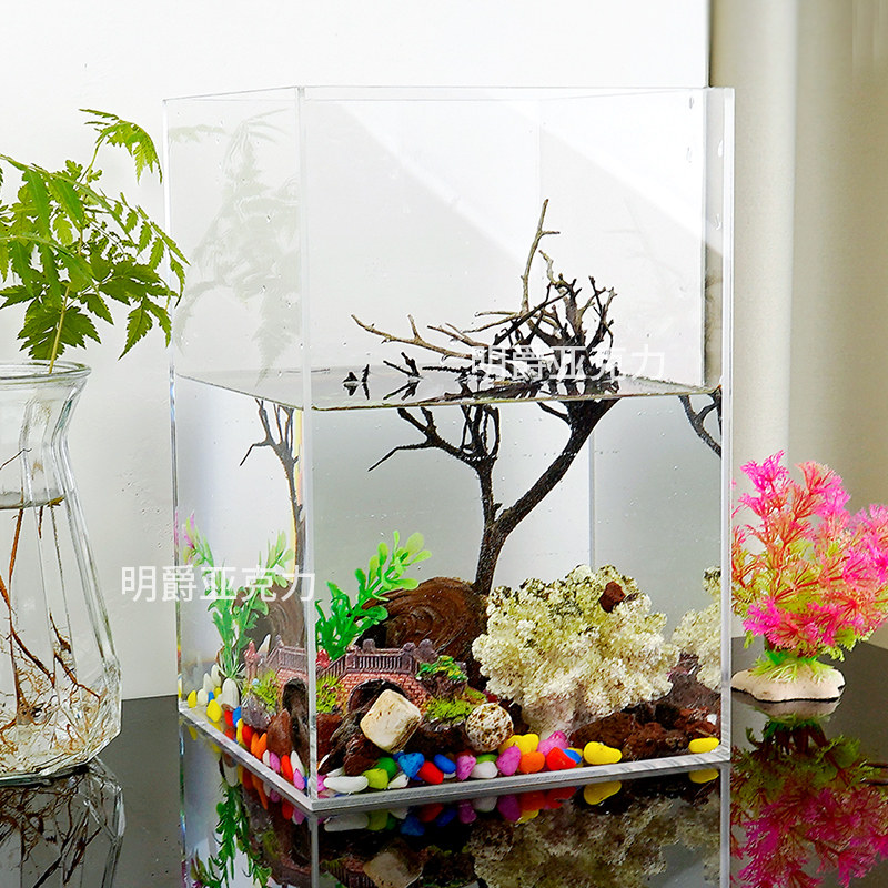 📚 亚克力透明方柱形桌面金鱼缸客厅小型办公室乌龟缸斗鱼大型水族箱