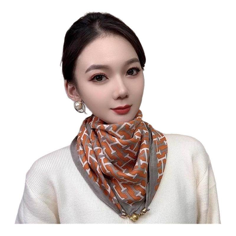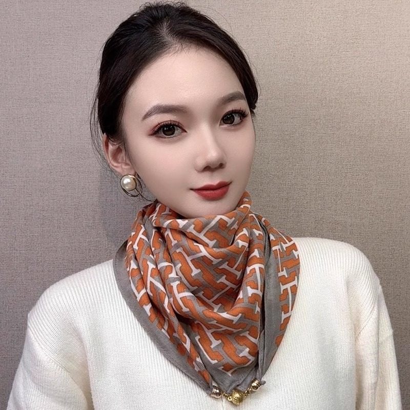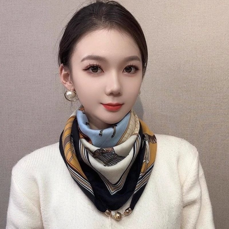 📚 2025新款高级感三角巾时尚磁吸扣小方巾秋冬保暖围脖围巾女丝巾女