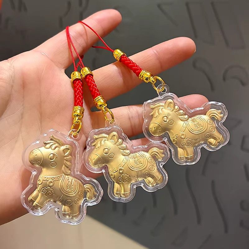 📚 新春塑箔金马新款创意马年马上有钱手机链挂件生肖钥匙扣包包挂饰