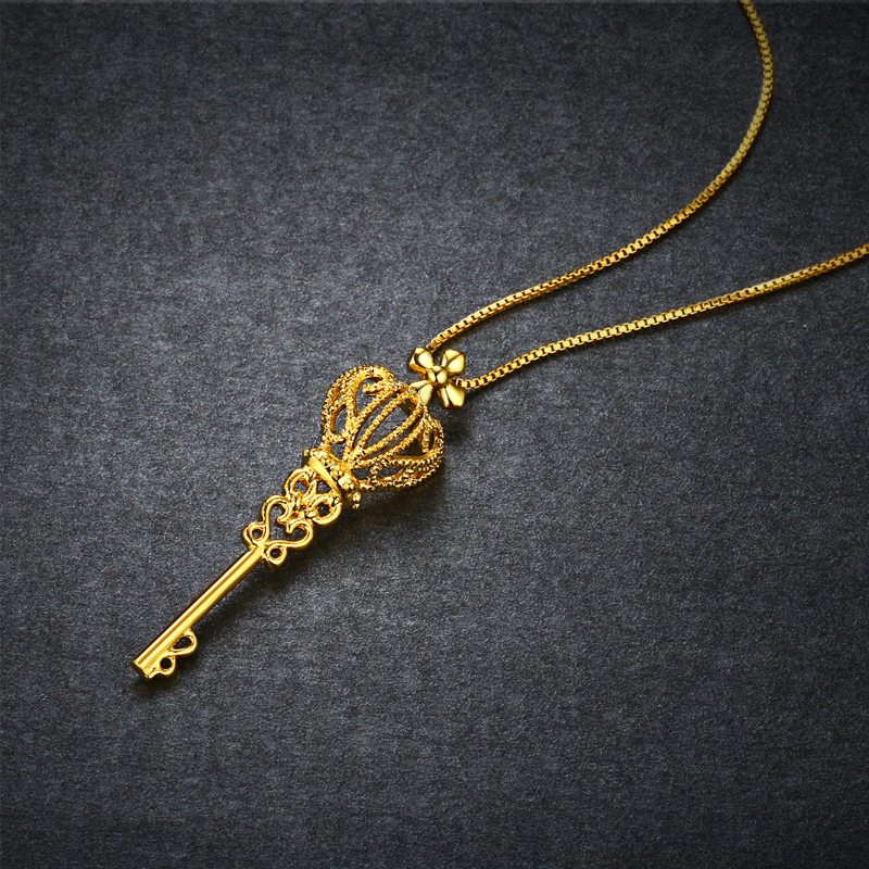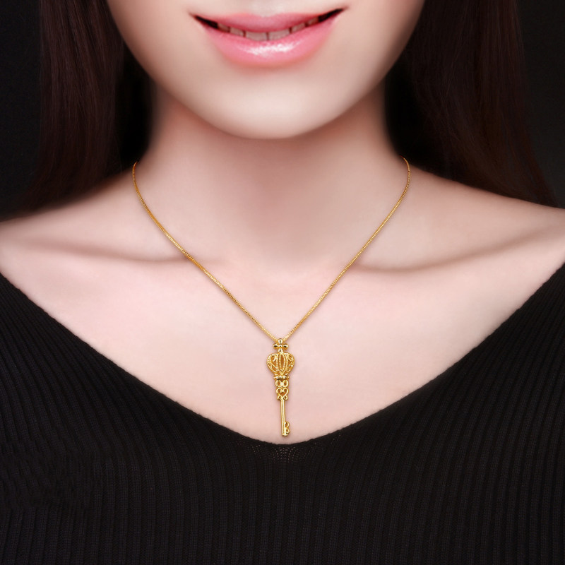 📚 右米饰品】韩国女镀黄金皇冠钥匙项链仿真金短款锁骨链吊坠配饰