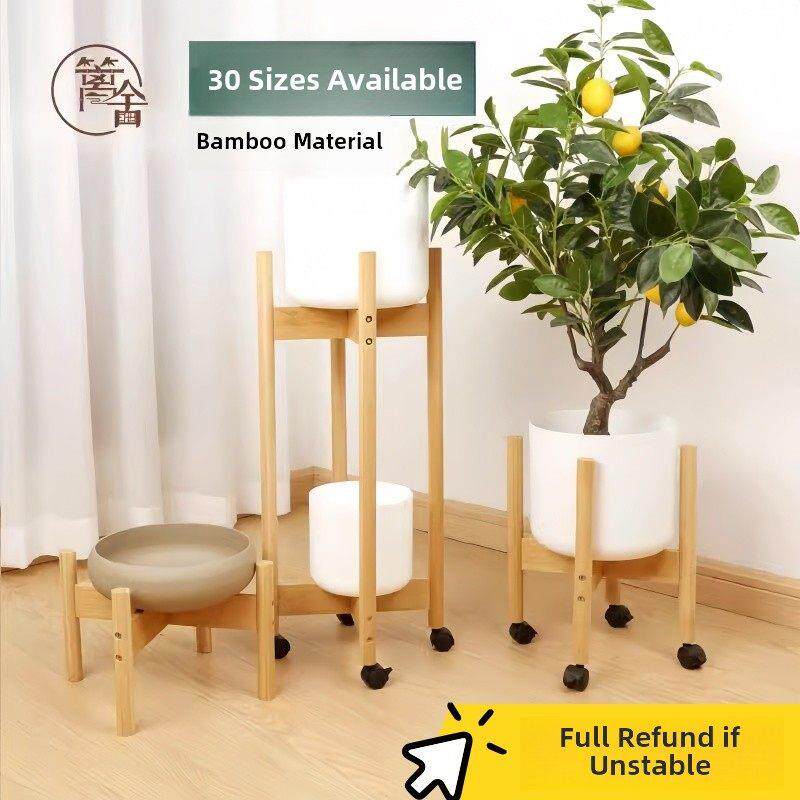📚 高级花盆抬高支架增高盆栽托架底座十字小花架实木桌面花托花台带