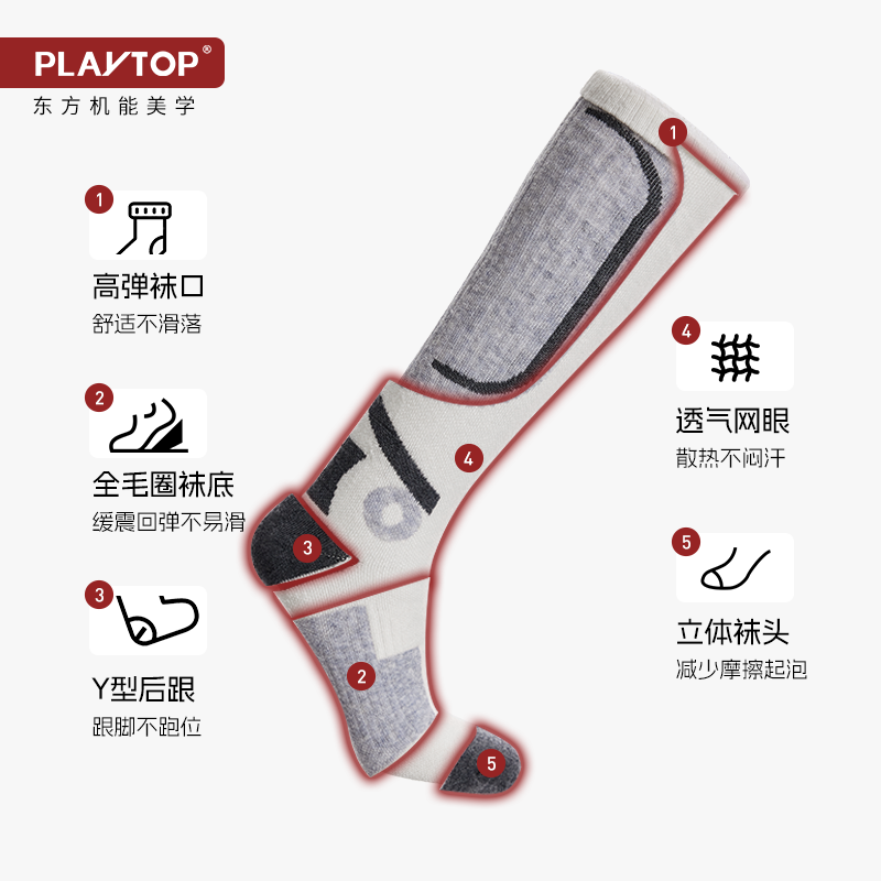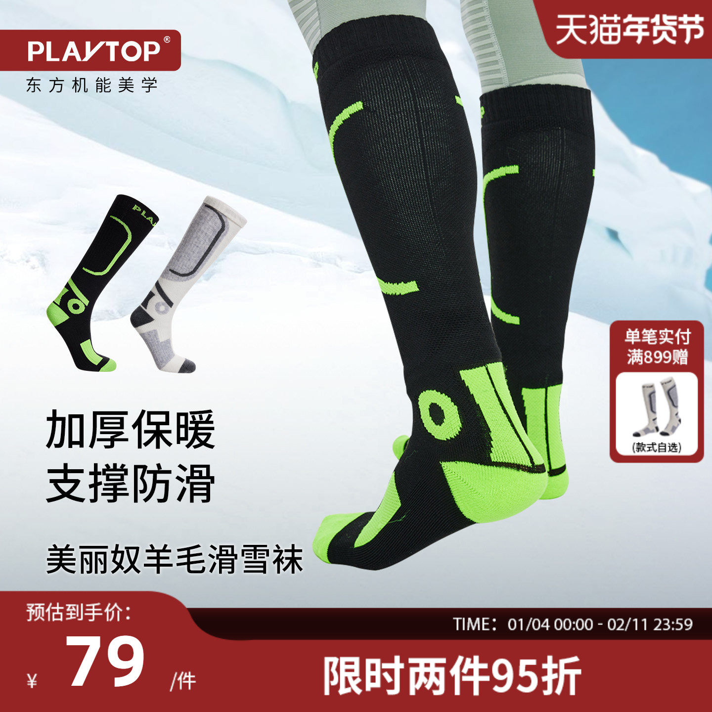 📚 PlayTop新款男女士专业滑雪袜保暖压缩长筒户外美利奴羊毛长袜子