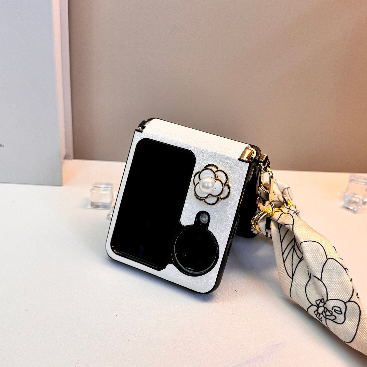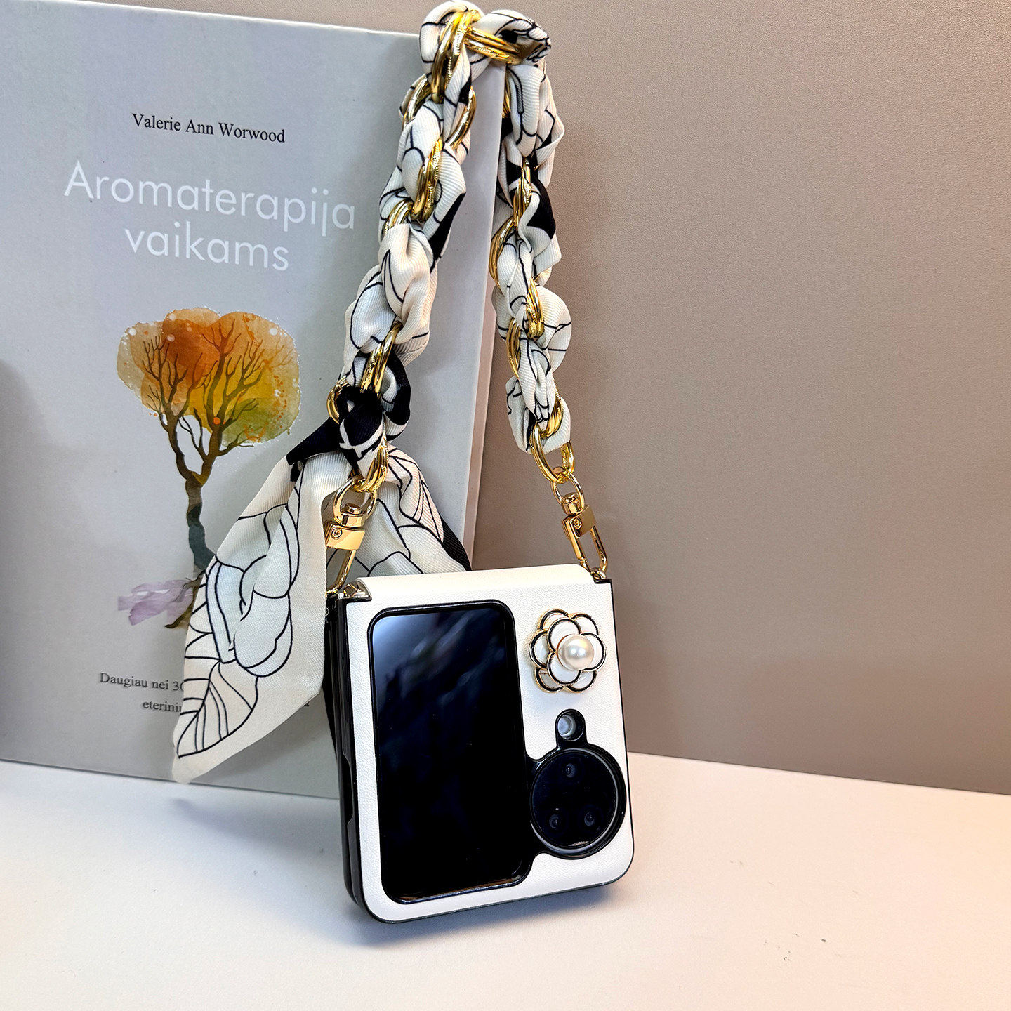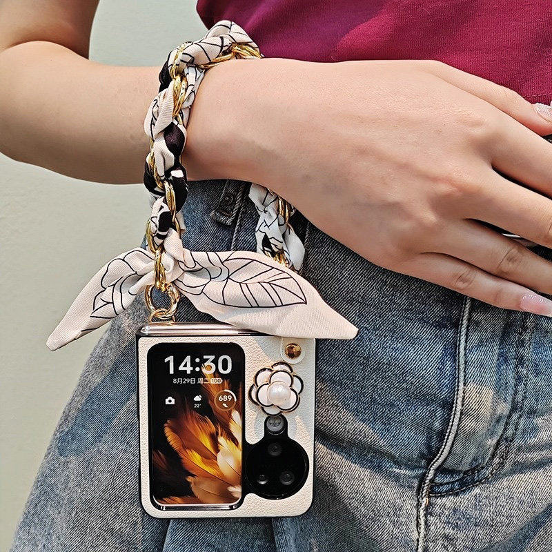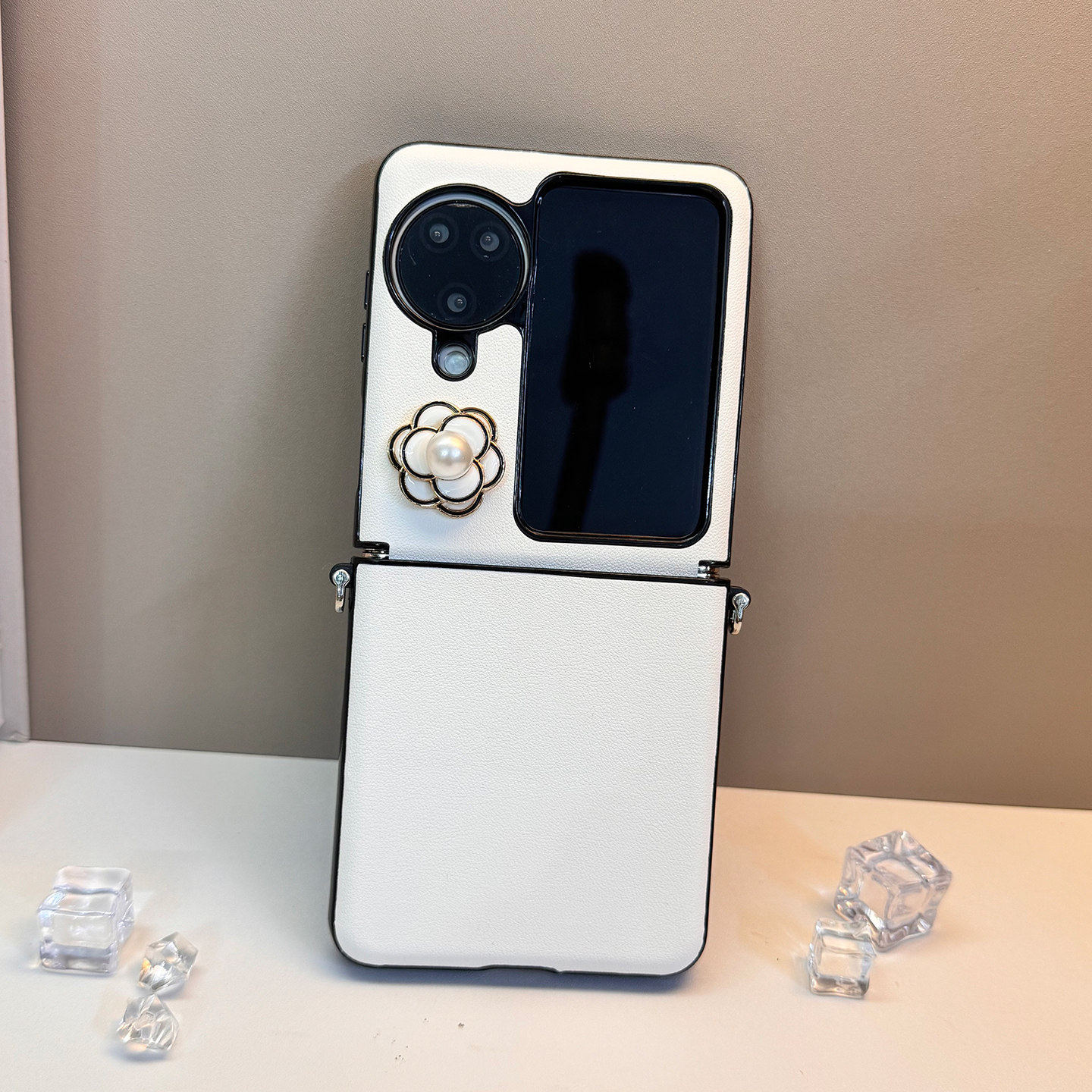 📚 适用OPPOfindN3Flip皮质N小米mixFlip2手机壳轻奢小香风华为PuraX高级感p50pocket2保护套novaFlip带挂绳外壳