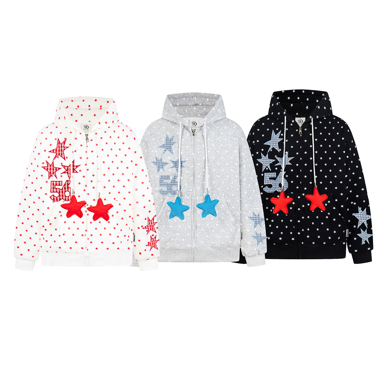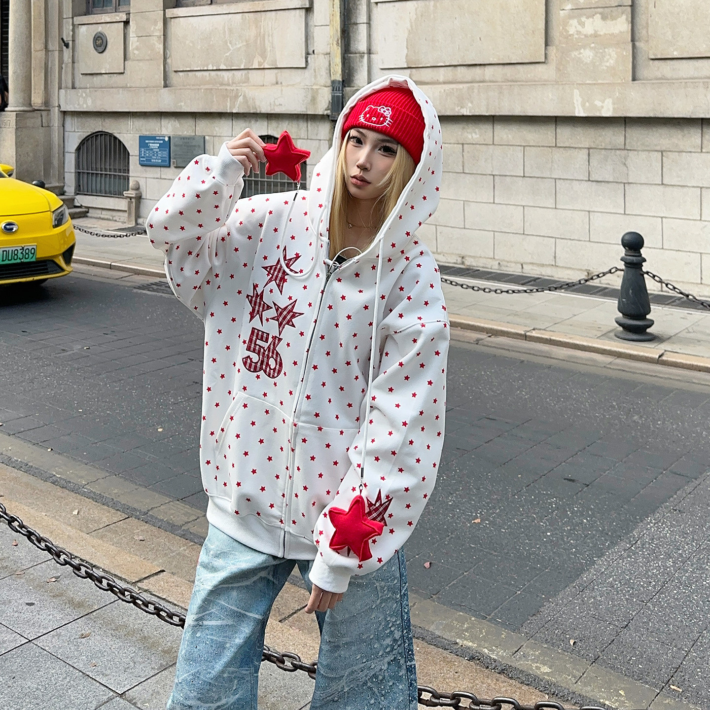 📚 BCRA原创美式星星满印连帽卫衣开衫男女春季新款宽松休闲情侣外套