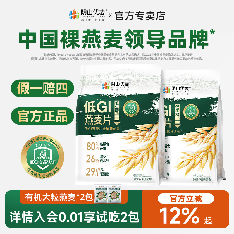 📚 阴山优麦低GI纯燕麦片营养早餐冲饮高蛋白小包官方正品低生糖麦片