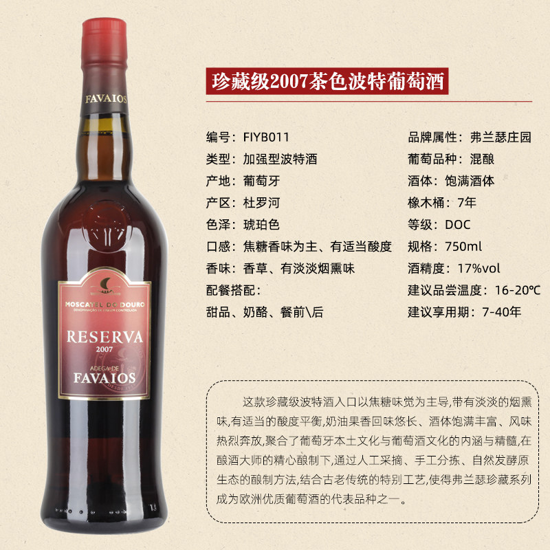 📚 波特酒2007年份珍藏茶色葡萄牙杜罗河进口葡萄酒甜型高度晚安红酒
