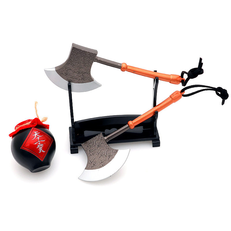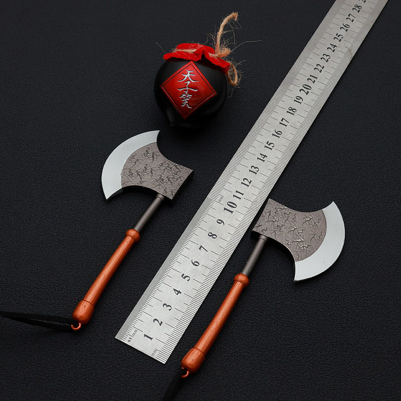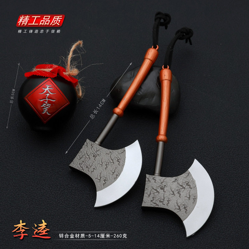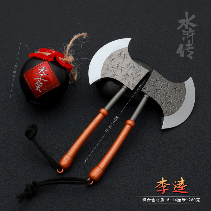 📚 水浒传周边兵器黑旋风鬼王李逵两柄板斧14CM金属武器模型合金摆件