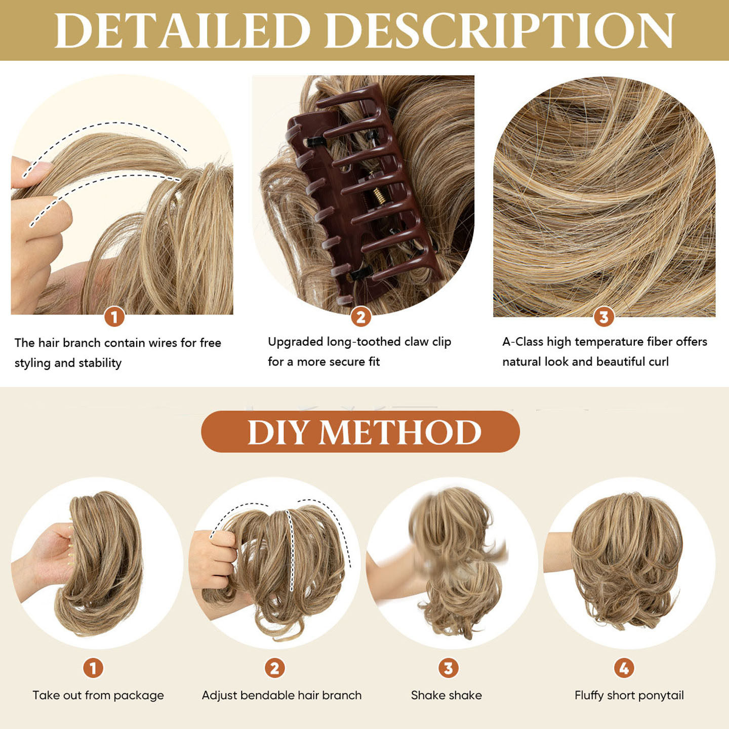 📚 欧美假发女可弯曲抓夹高马尾假发自然蓬松盘发短卷发马尾ponytail