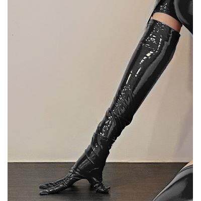 📚 Bright leather PU short gloves PVC black patent leather elas