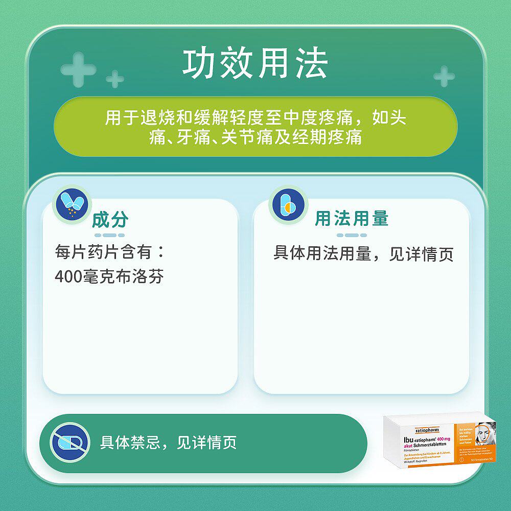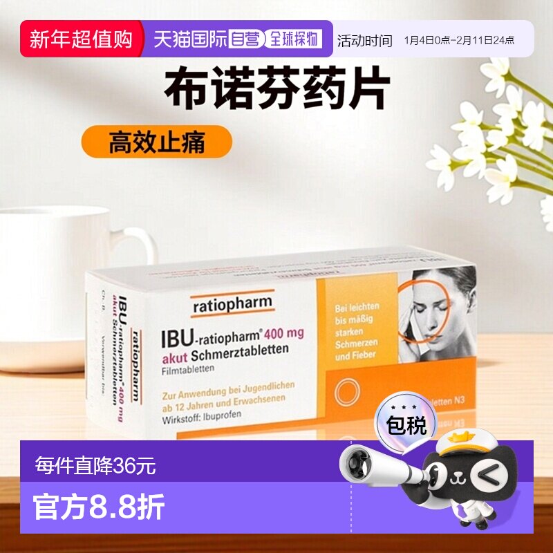 📚 欧洲直邮德国药房ratiopharm布诺芬400mg止痛消炎退烧药片50粒