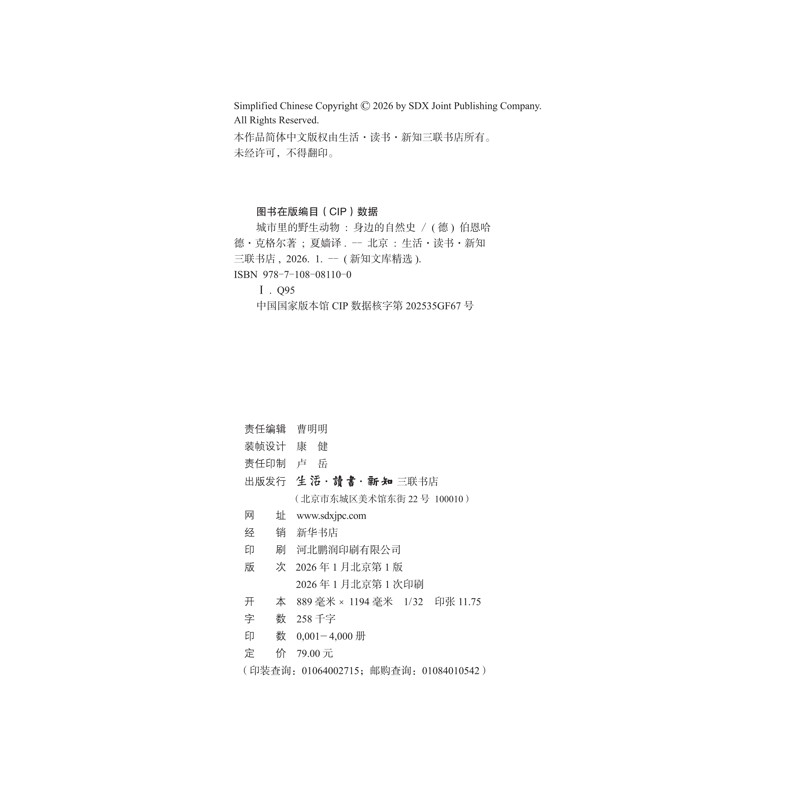 📚 城市里的野生动物:身边的自然史[德]伯恩哈德·克格尔(Bernhard Kegel)社会科学总论生活.读书.新知三联书店