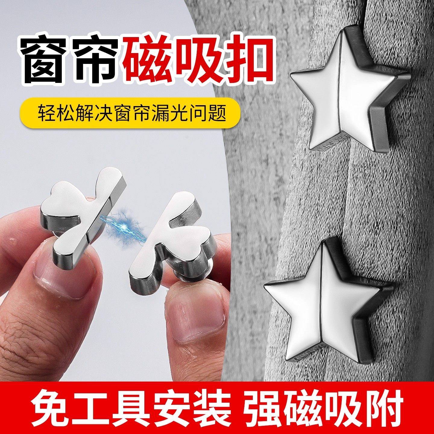 📚 防漏光窗帘吸磁扣门帘闭合神器星星四叶草缝隙固定器磁吸闭合免钉
