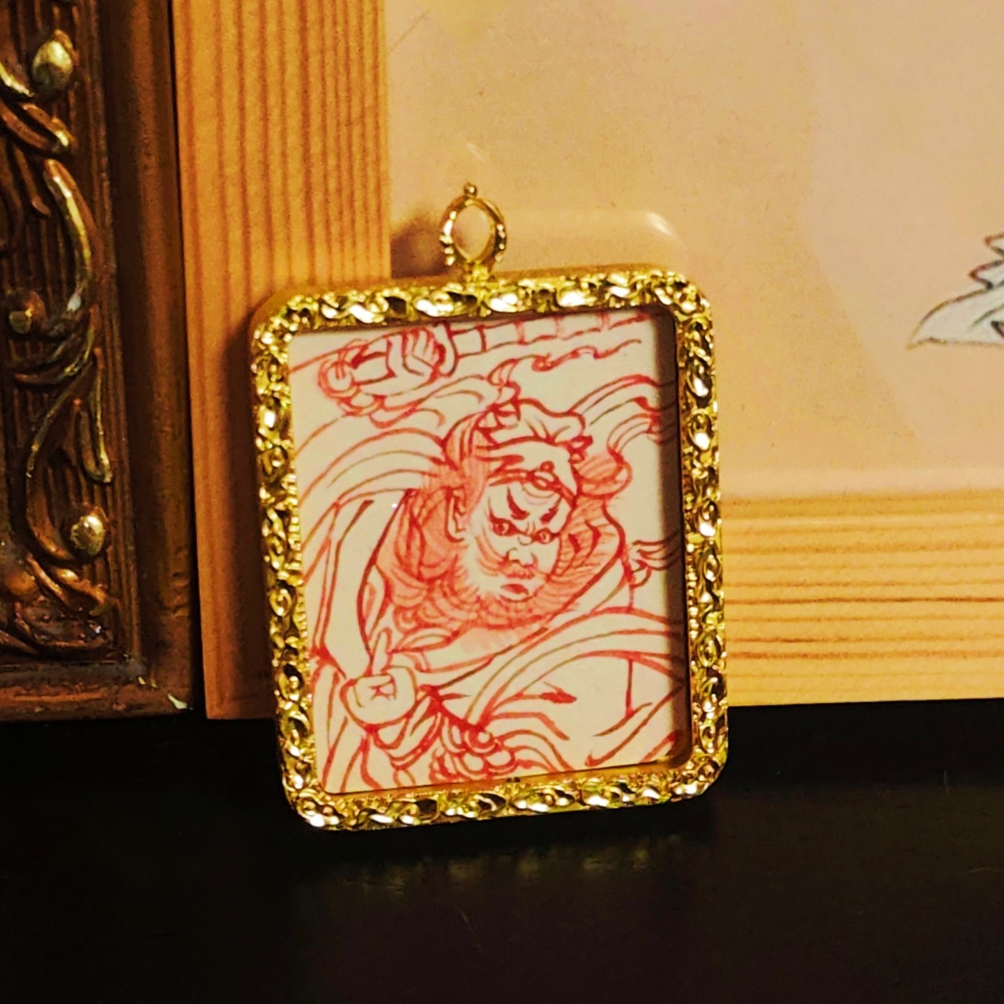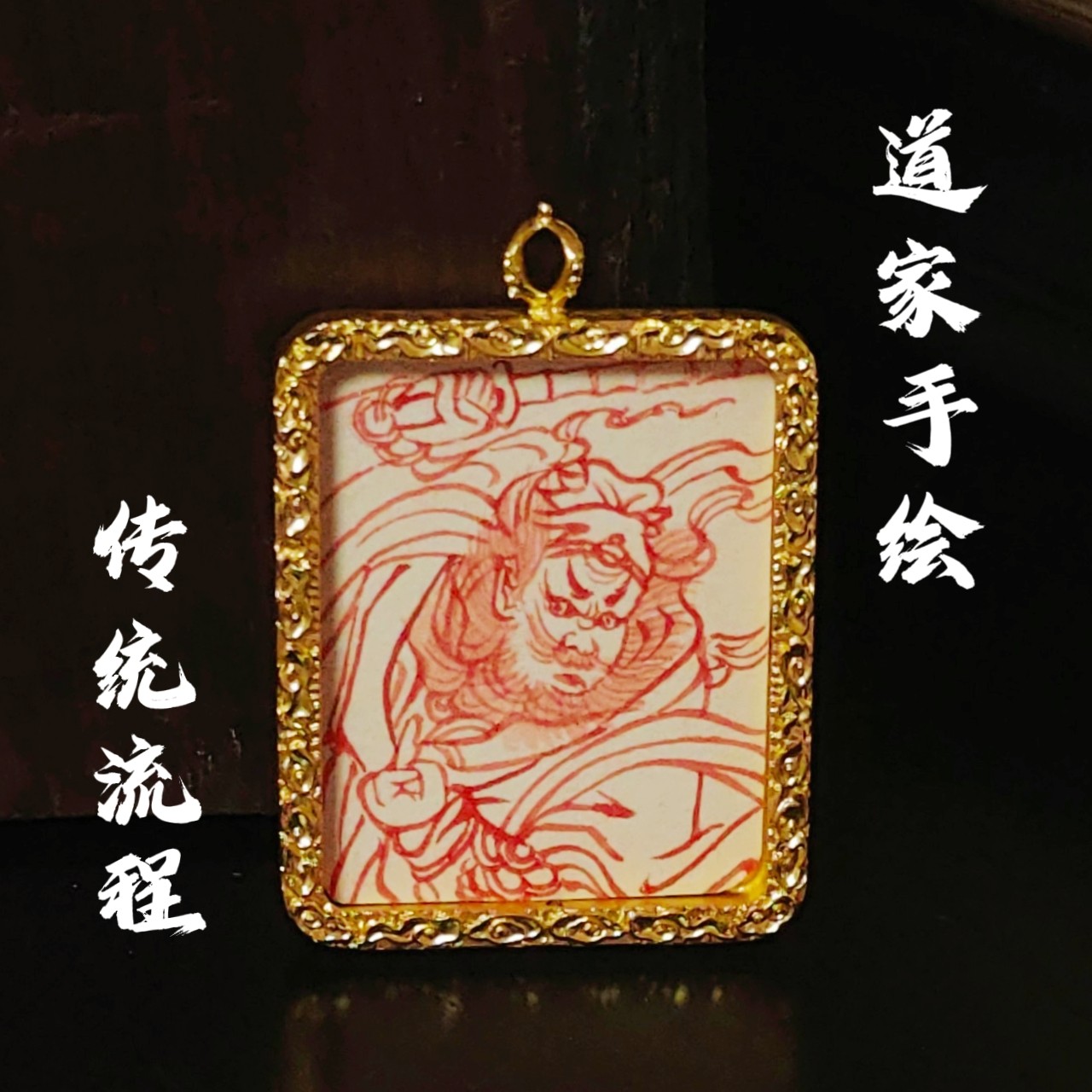 📚 王灵官朱砂手绘唐卡灵官像道家神像嘎乌盒可定制图案吊坠讳字