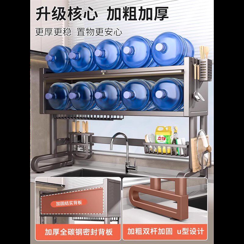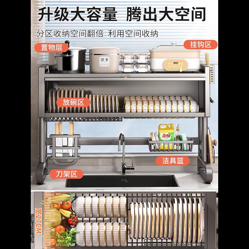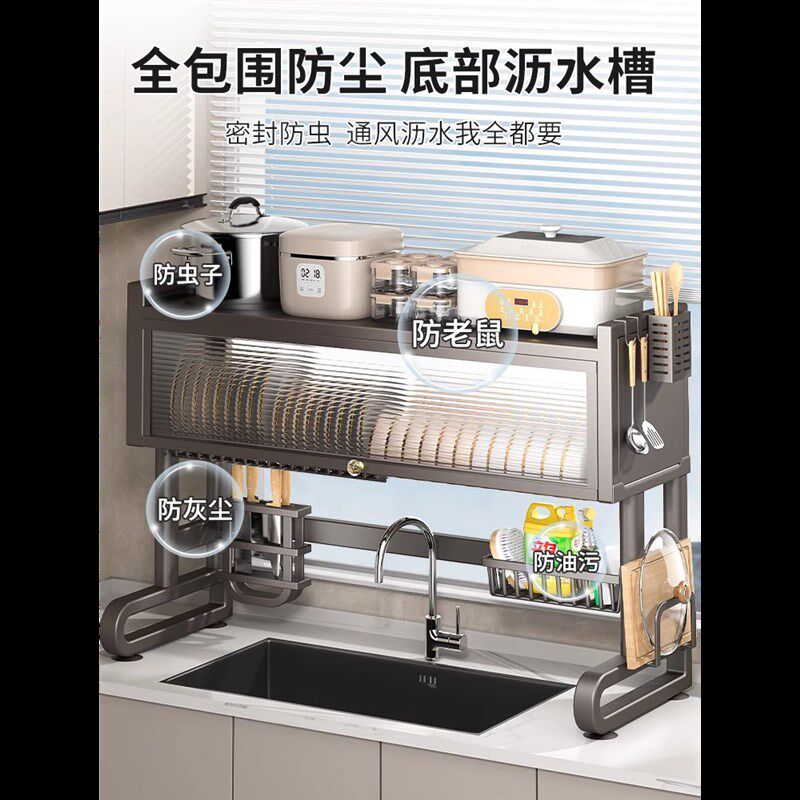 📚 不锈钢厨房水槽置物架碗碟收纳架洗碗槽水池防尘多功能碗盘沥水柜
