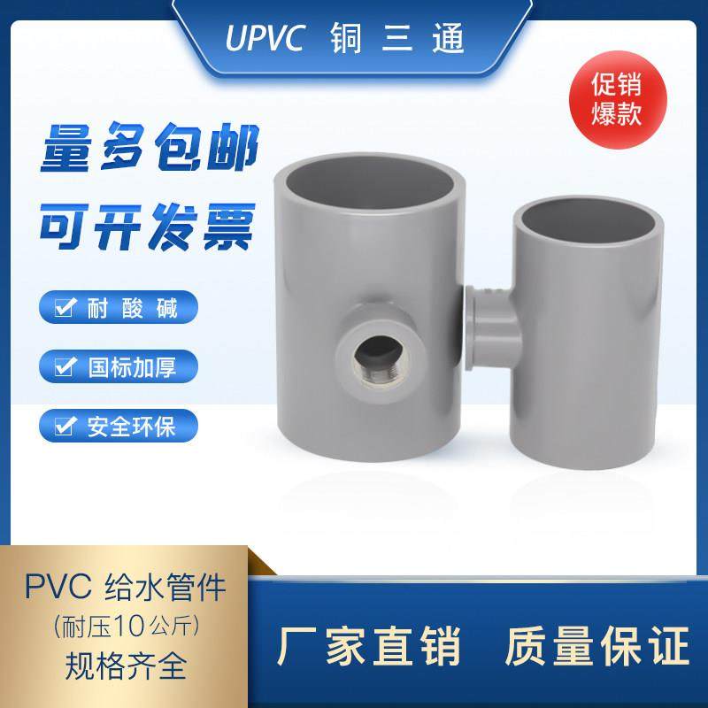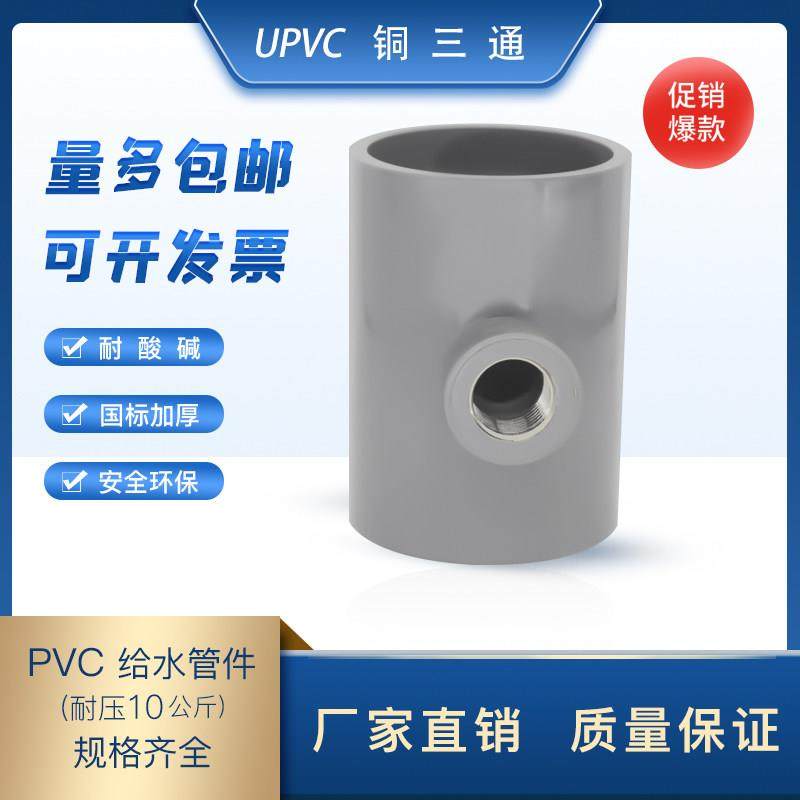 📚 upvc入铜内丝三通螺纹三通管4分6分2寸塑料管三通25/32/40/50/63