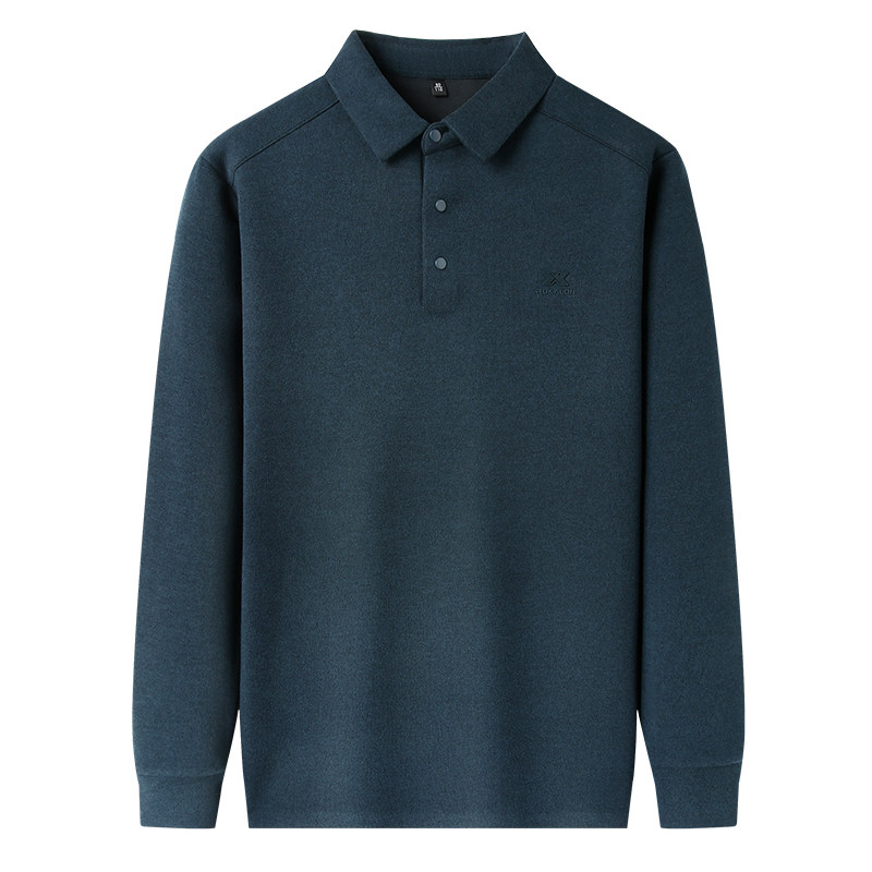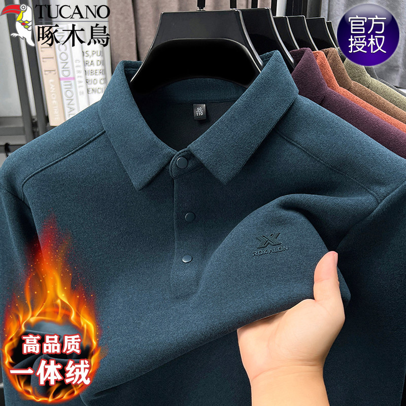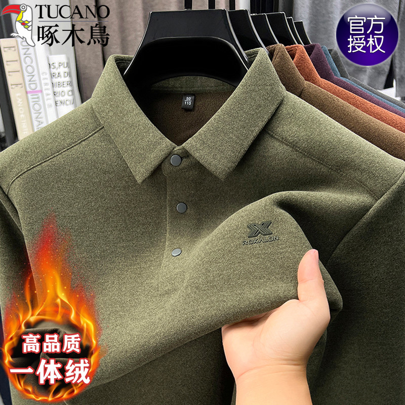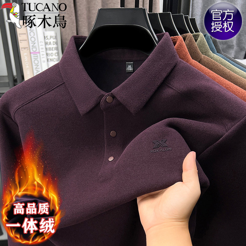 📚 啄木鸟加绒秋冬款男士长袖t恤衬衫领德绒打底卫衣中年商务POLO衫