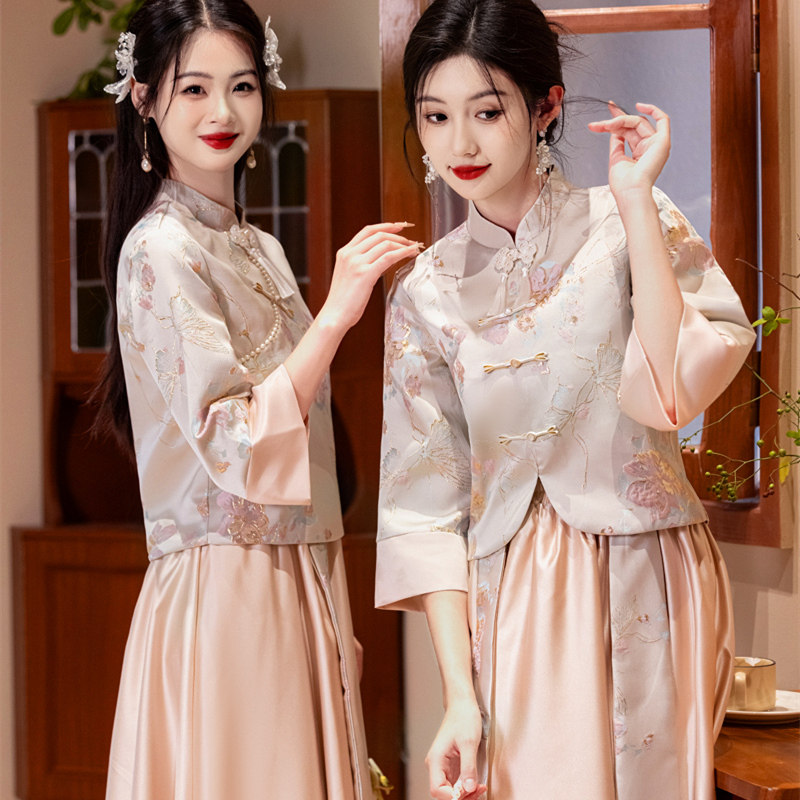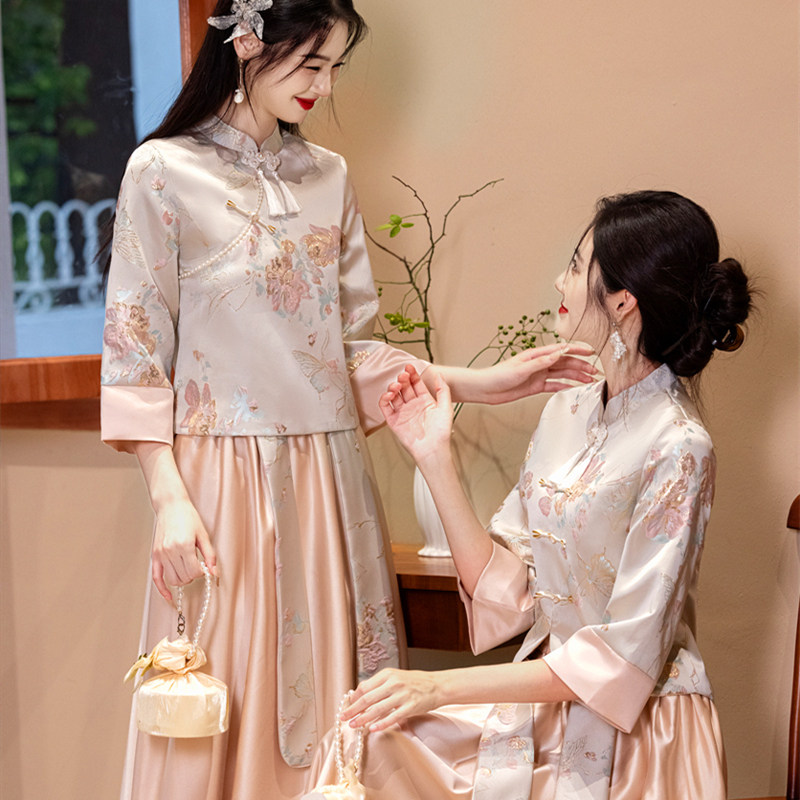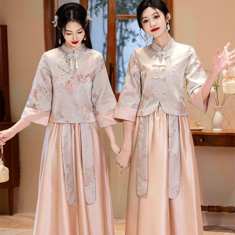📚 伴娘服租赁中式2025新款秋冬姐妹团结婚礼服缎面伴娘伴郎服出租女