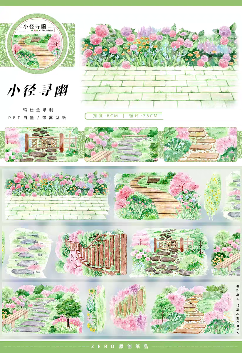 📚 分装小径寻幽pet地面石阶路面造景手帐胶带拼贴装饰咕卡造景胶带