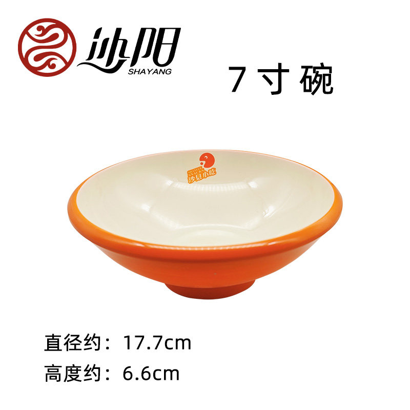 📚 沙阳双色橙白密胺餐具沙县小吃拌面炒盘馄饨面碗汤碗餐盘10个包邮