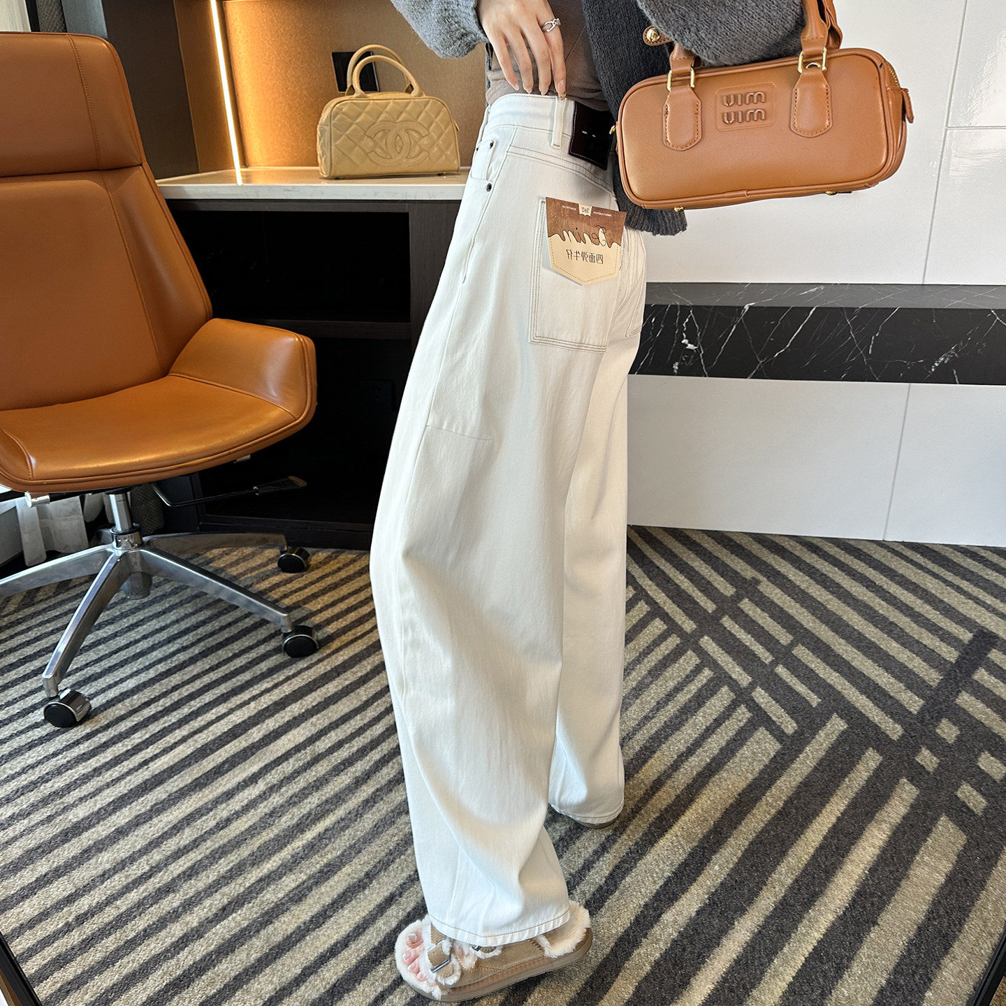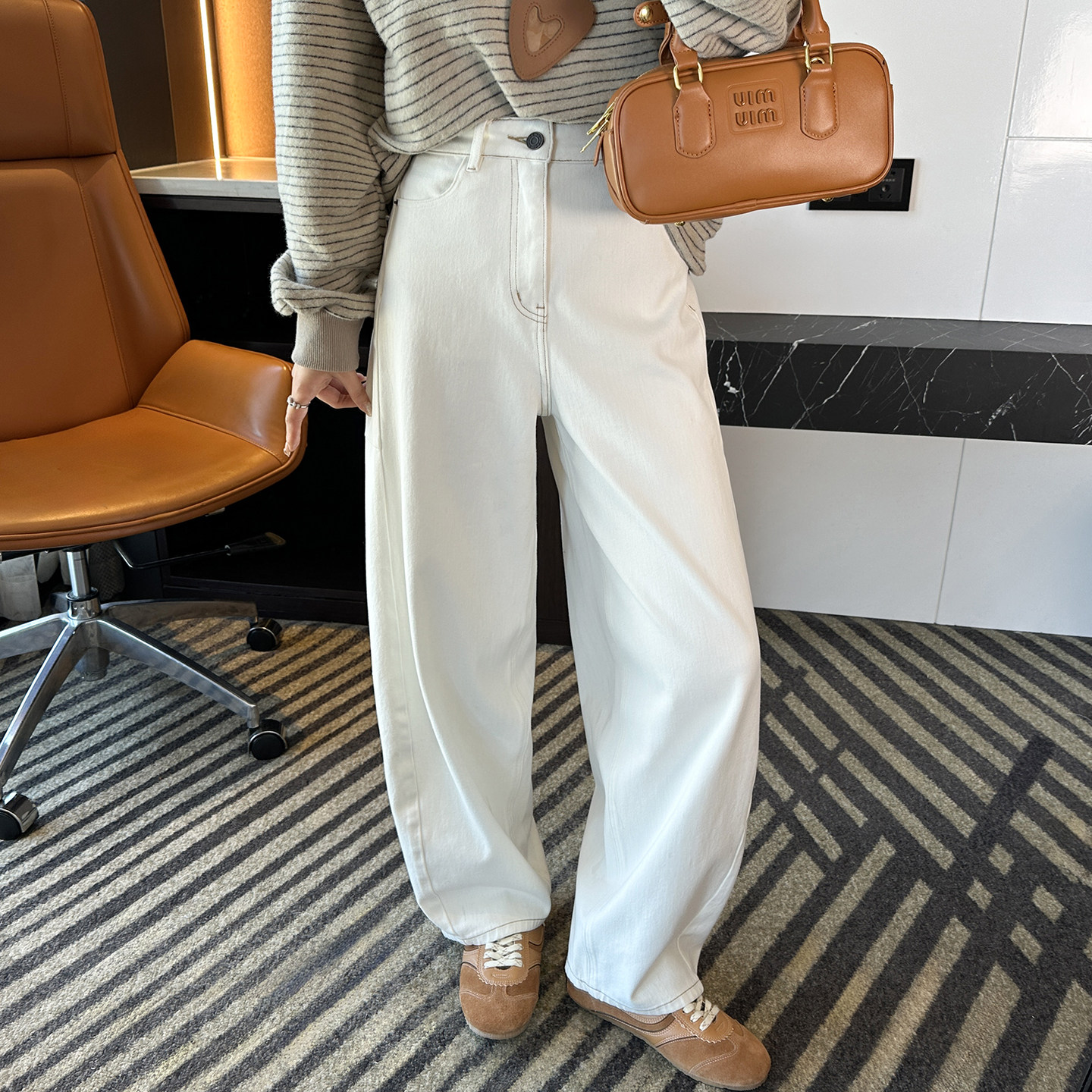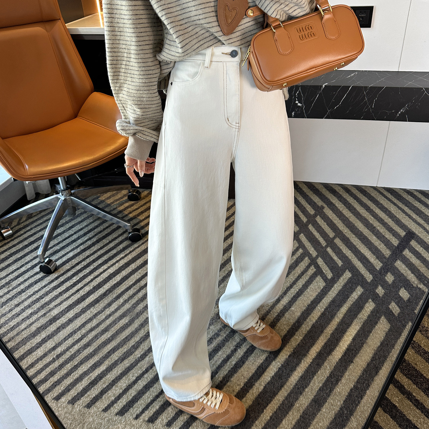 📚 裤型太赞!难得一见~白色茧型弯刀牛仔裤女春新浅色宽松阔腿长裤