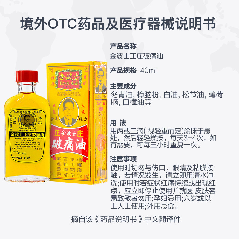 📚 金波士香港原装进口正庄破痛油止痛跌打淤积疼痛药房药油官方正品