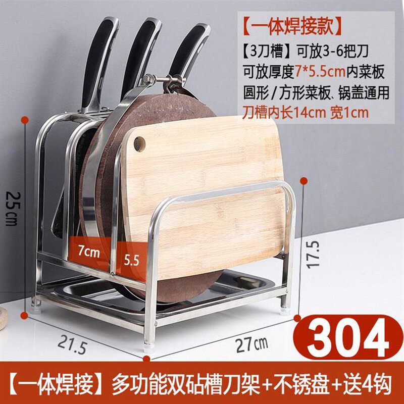 📚 特厚304不锈钢刀架厨房菜板架子一体砧板收纳架锅盖刀具台式置物