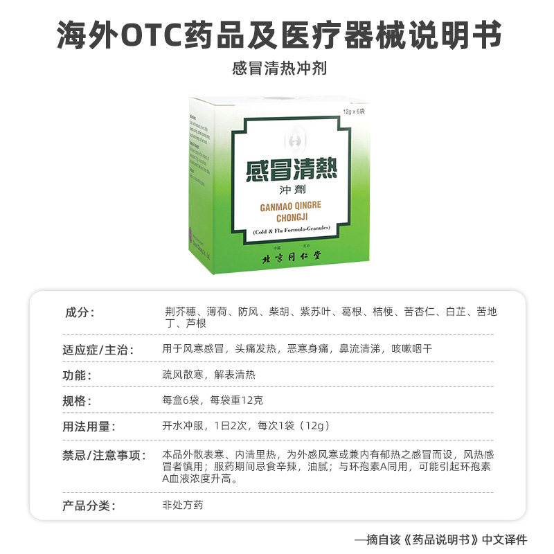 📚 【自营】北京同仁堂感冒清热冲剂12克*6袋装风寒感冒药