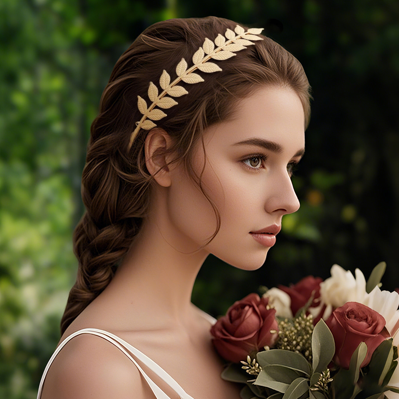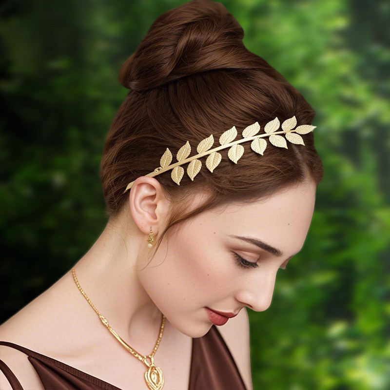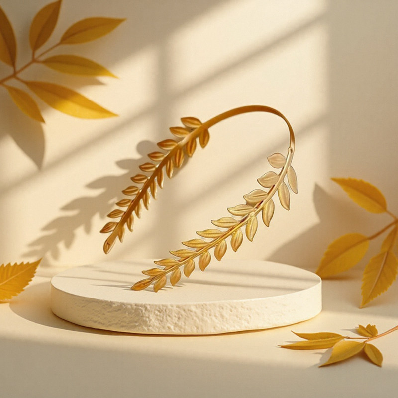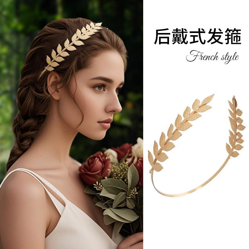 📚 法式复古金色树叶后戴式发箍女高级感2025新款希腊女神高颅顶头饰
