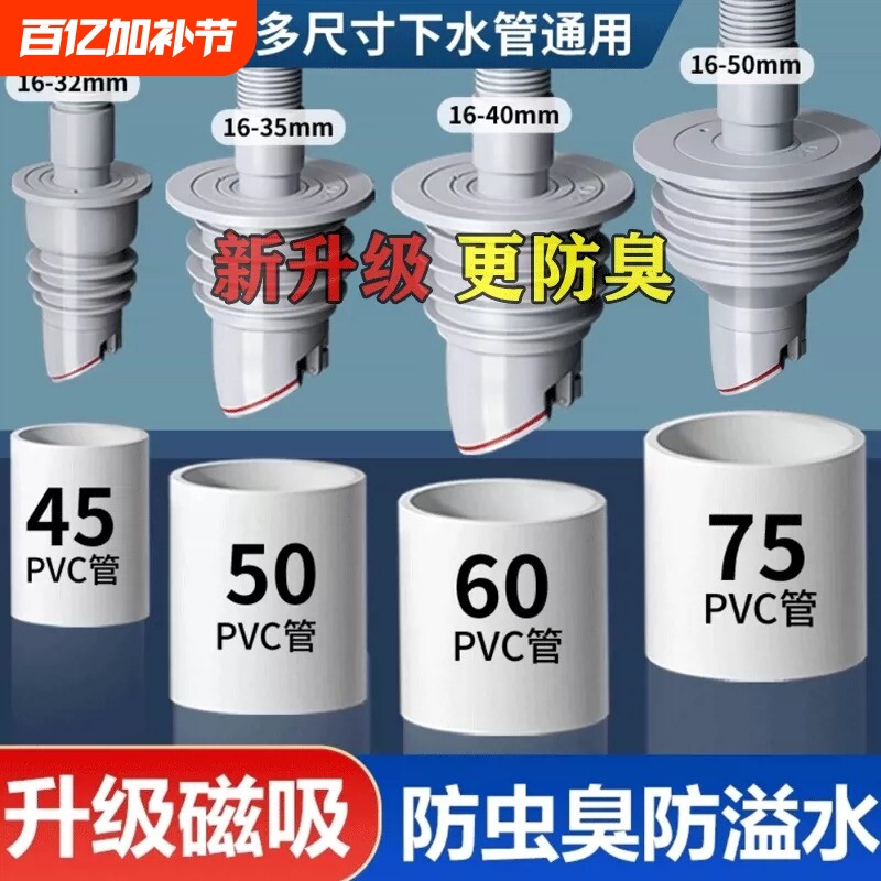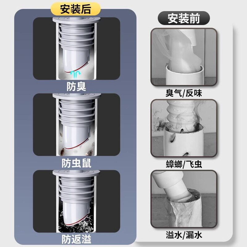 📚 厨房下水管道密封塞洗衣机5075封口盖硅胶圈防返臭堵口神器密封圈