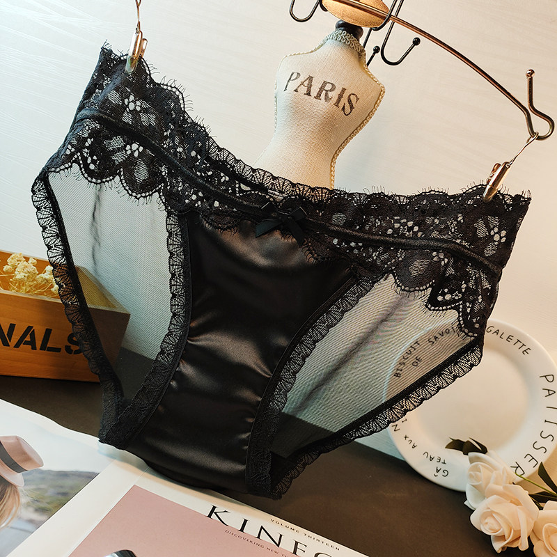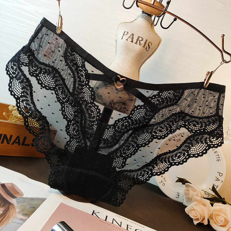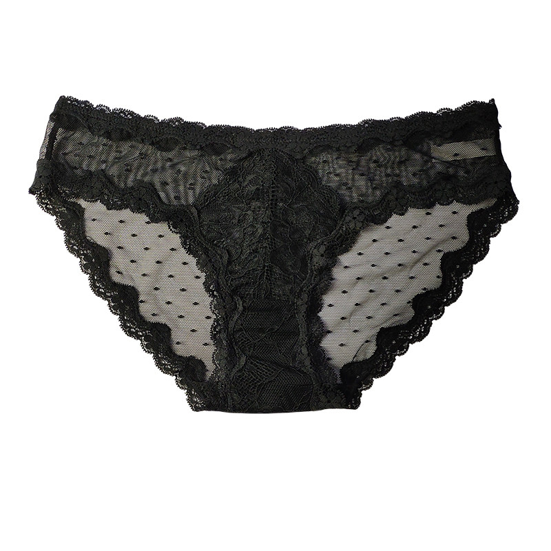 📚 欧美性感蕾丝透视诱惑黑色汇锦纶面料中低腰棉内裆三角内裤女