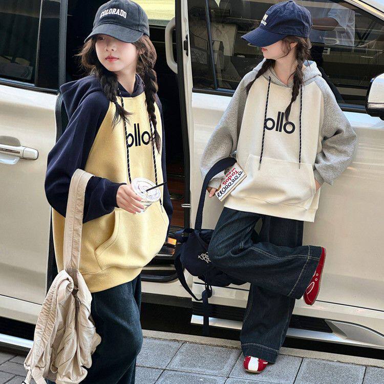 📚 女童加绒秋冬2025新款韩版休闲连帽加厚卫衣中大童初中生洋气外套
