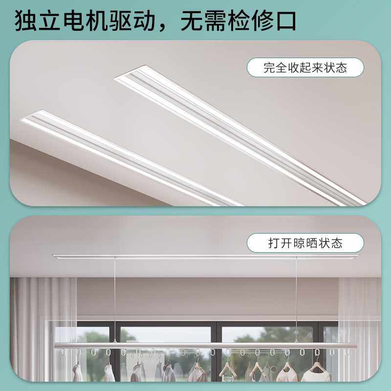 📚 隐藏嵌入式电动晾衣架家用智能升降式晾衣杆阳台隐形式吊顶晾衣机