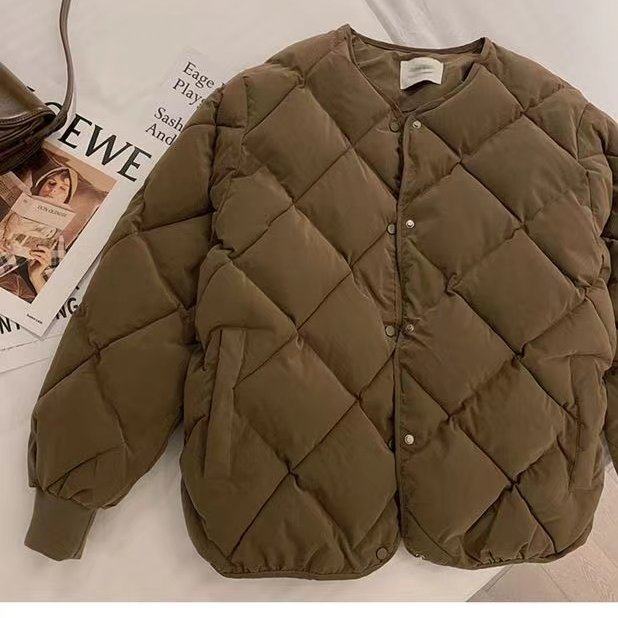 📚 网图 新款棱形格女装宽松学生小众设计感ins夹克棉衣oversize棉服